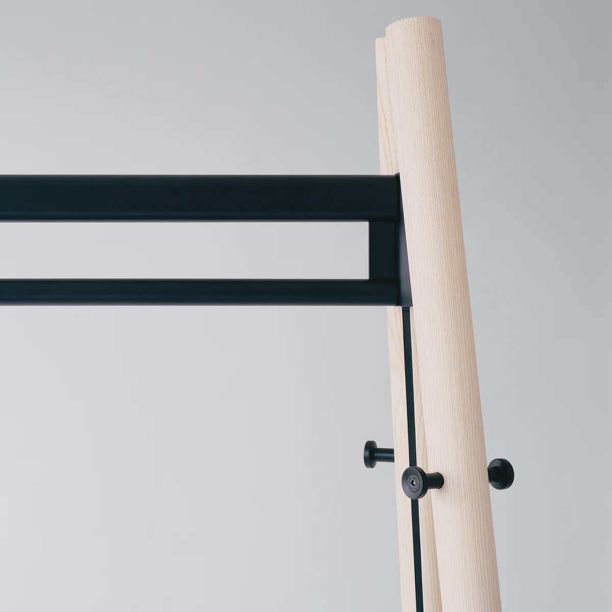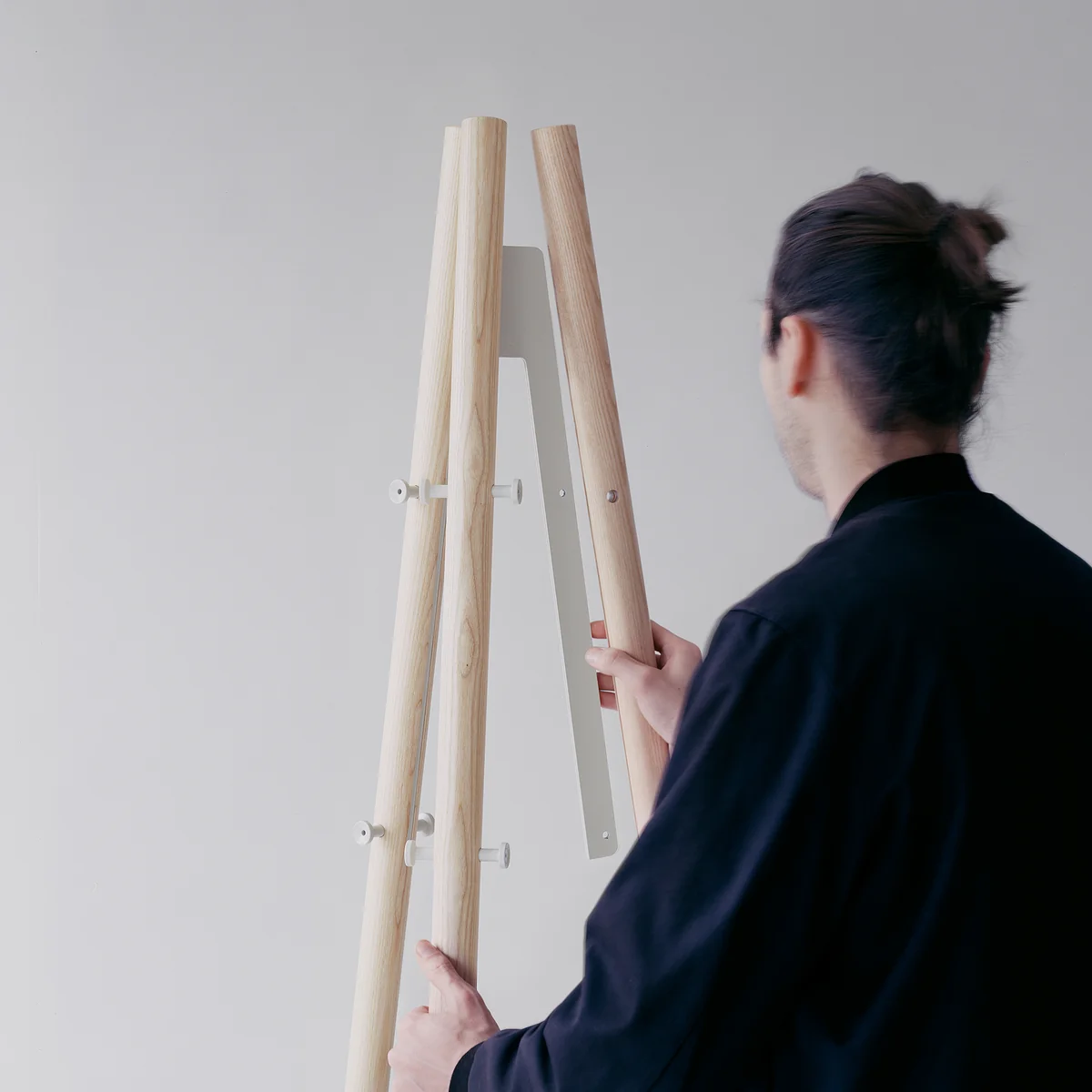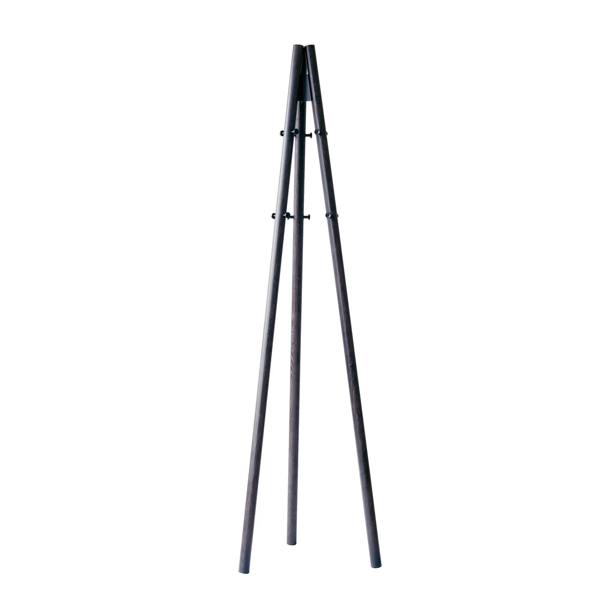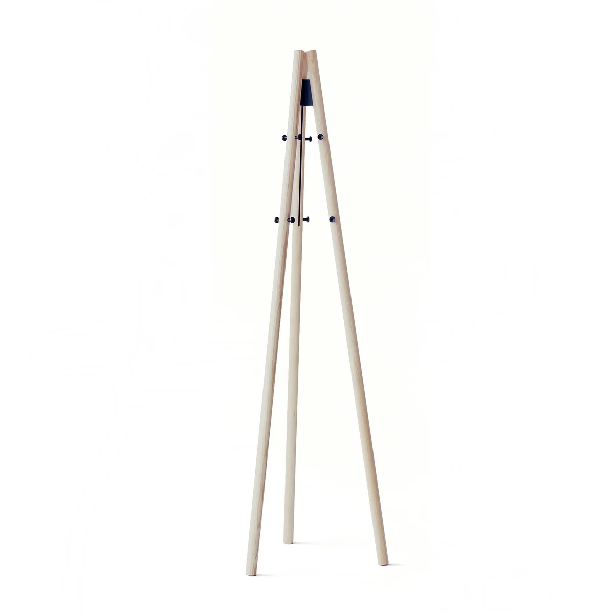 De constructie lijkt op een statief en bestaat uit een wigvormige, gepoedercoate metalen verbinding waarop drie slanke essenhouten poten zijn gemonteerd. Ze worden aan elkaar geschroefd met metalen pennen die licht uitsteken en dus ook dienen als kapstokhaken. Rybakken heeft bewust alle elementen van de constructie zichtbaar gemaakt, waardoor een transparant ontwerp ontstaat dat niets voor de gebruiker verborgen houdt. Rybakken's werk kan worden opgevat als een hommage aan de beroemde Finse ontwerper Alvar Aalto en de vaak herkenbare originaliteit in zijn ontwerpen.