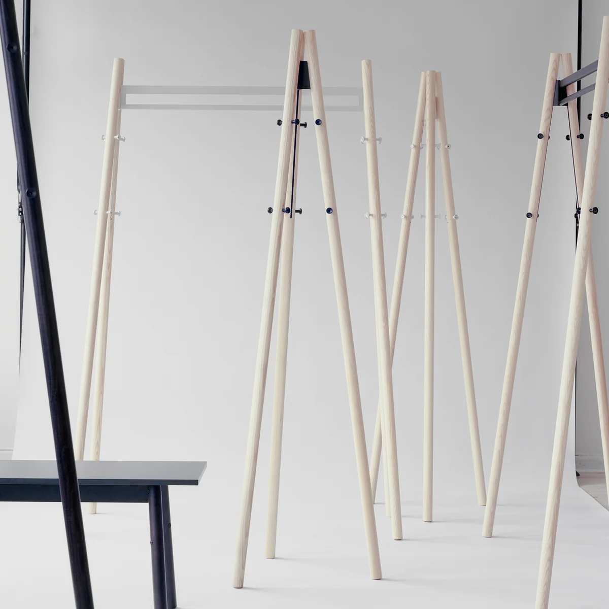 De Kiila kapstok is een ontwerp van Daniel Rybakken voor de Finse fabrikant Artek. Voor Rybakken was de uitdaging om objecten te creëren die harmonieus opgaan in het Artek-assortiment, maar ook grenzen overschrijden en een eigen verhaal vertellen. Het resultaat is een serie nuttige en veelzijdige kleine meubelstukken voor de entree, Kiila (Fins voor wig ). Naast een bankje en een halstand behoort de kapstok ook tot de collectie en komt hij tot zijn recht in de gang. Zware jassen, jassen, hoeden, hoeden, sjaals en tassen vinden hun plaats op het filigraan kledingrek zonder het evenwicht te verstoren. Handdoeken en andere gebruiksvoorwerpen kunnen ook in de badkamer worden opgehangen.