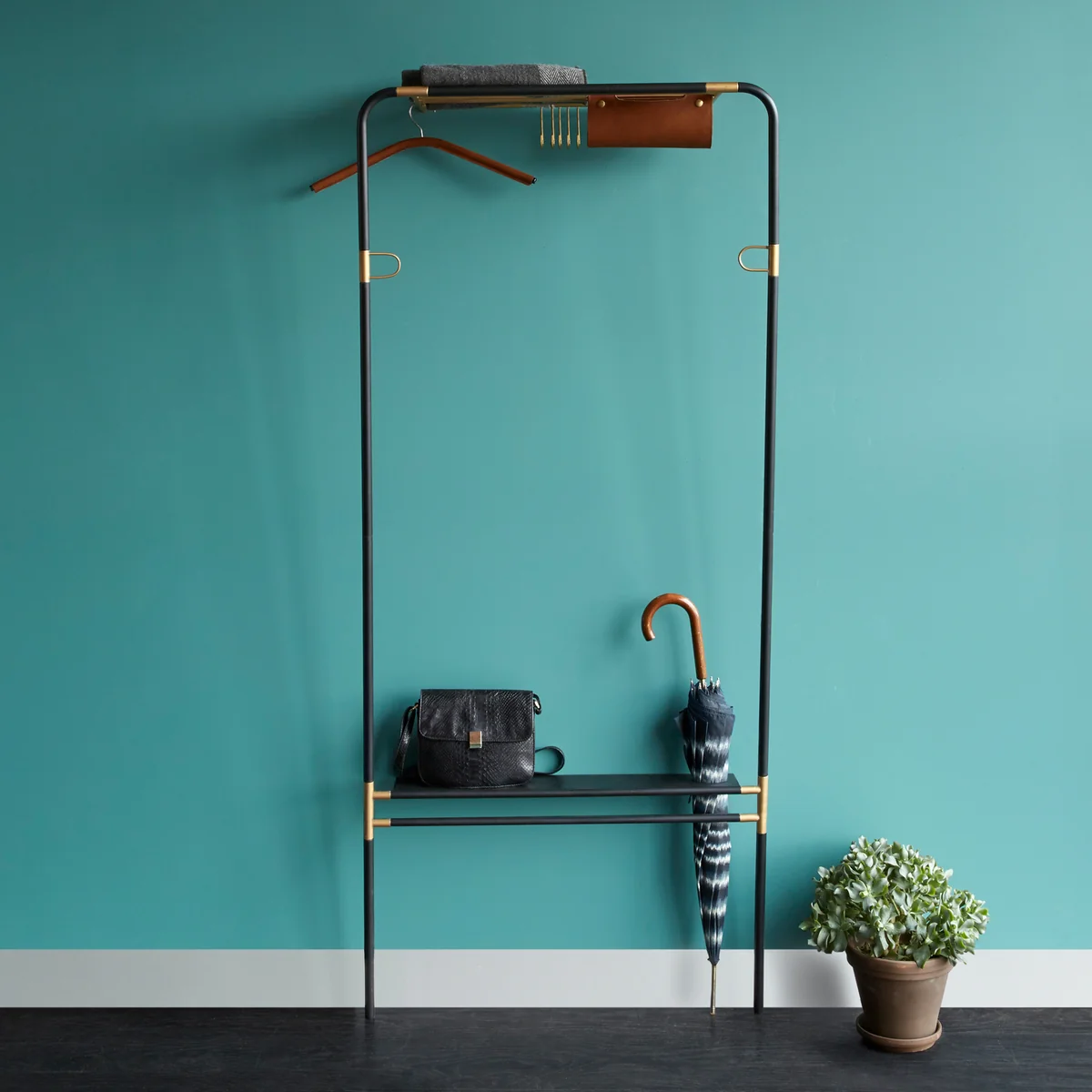 Gepoedercoat staal voegt een licht industriële stijl toe aan de kapstok ontworpen door Jonas Søndergaard, onderbroken door warme messing details.