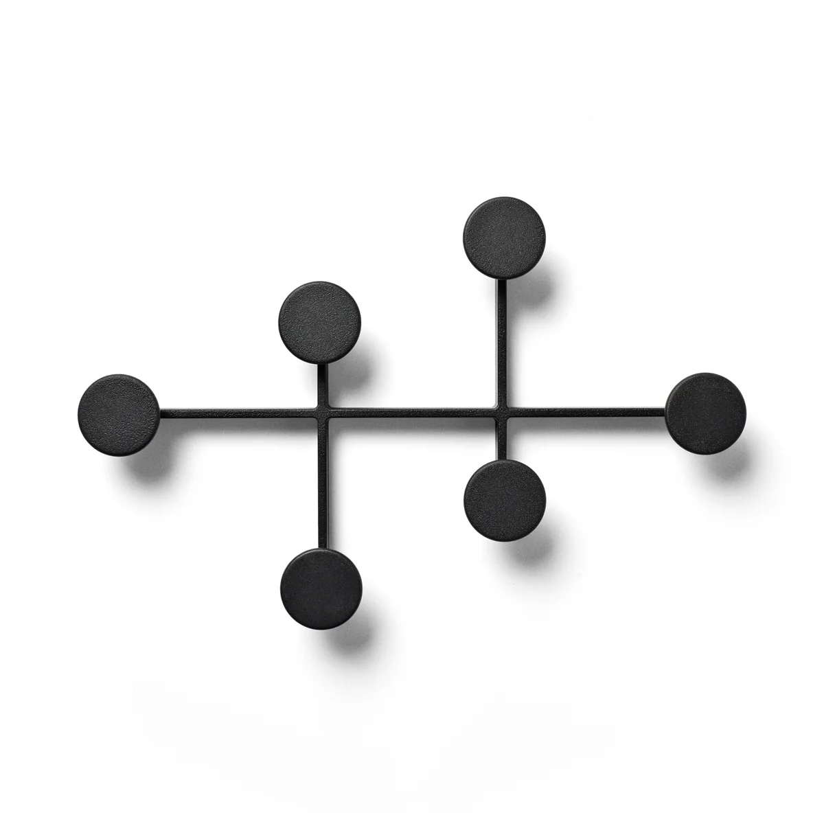De kapstokhaak is eenvoudig aan de muur te bevestigen en alle schroeven zijn weggewerkt in het frame zodat niets de strakke look verstoort. Hij is gemaakt van gepoedercoat metaal in verschillende kleuren. Hij is ook verkrijgbaar in verschillende maten.