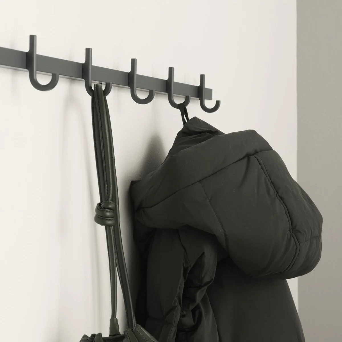 De Relief haakarm van String is niet alleen een praktische wandkapstok, maar ook een esthetisch hoogtepunt voor elke entree of hal. Hij is gemaakt van hoogwaardig aluminium met poedercoating en overtuigt door zijn heldere design en robuuste constructie. De reliëfstructuur geeft de haakrail een speciale touch en maakt hem tot een blikvanger aan de muur. Met zijn meerdere haken biedt hij voldoende ruimte voor jassen, sjaals, handtassen en andere accessoires, terwijl hij tegelijkertijd orde en overzicht schept. Dankzij het tijdloze ontwerp past de haakrail harmonieus in allerlei interieurstijlen en voegt hij een vleugje Scandinavische elegantie toe aan elke kamer.
