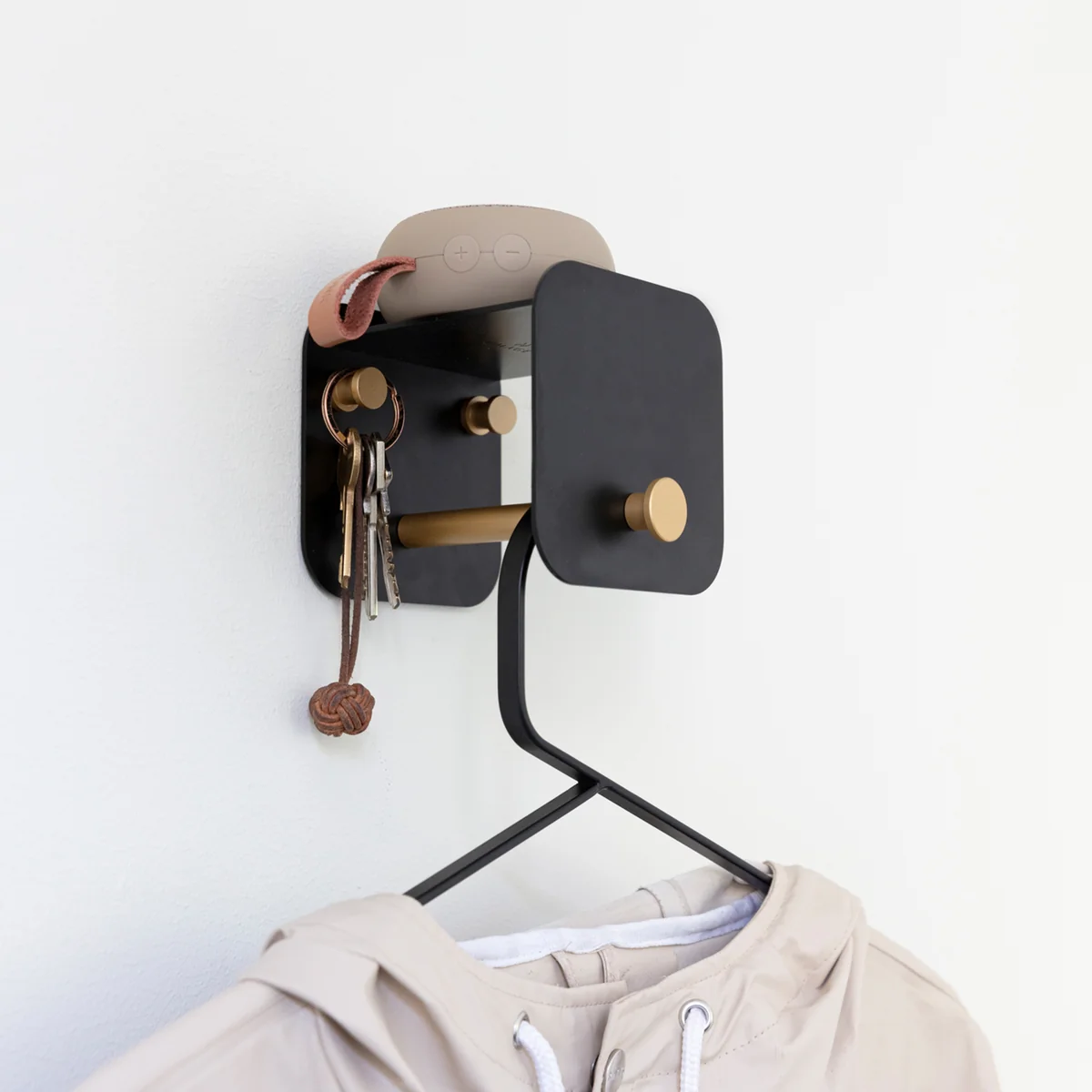 Hang In There is een multifunctionele en flexibele wandhanger voor alle belangrijke gebruiksvoorwerpen in de entreeruimte. De wandkapstok van Umage is een 3-in-1 product dat verschillende opbergoplossingen combineert in de vorm van een kleine plank, een rek en een haak, waardoor hij perfect is voor kleine flats of kamers met weinig ruimte.