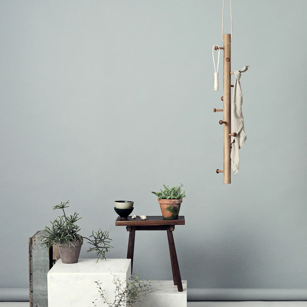 De Copenhanger Hangkast van We Do Wood brengt een frisse Scandinavische lucht in huis: gemaakt van FCS-gecertificeerd eikenhout is de hangkast een stuk dat niet zo vaak voorkomt. Als atypisch stuk geeft het een tijdloos en artistiek tintje aan het interieur dat gegarandeerd de aandacht trekt. De kapstok wordt geleverd met een leren koord van 2 meter. De Copenhanger De hangende kapstok is verkrijgbaar in verschillende uitvoeringen en kan op vele manieren worden gecombineerd, afhankelijk van de individuele wensen.