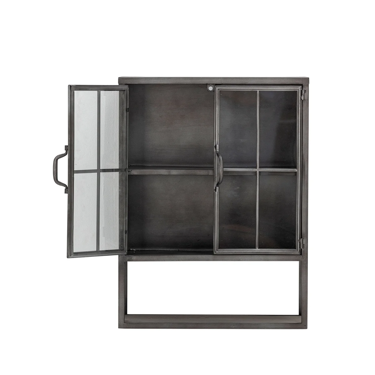 De Sindre kast combineert robuust metaal met glazen vensters en zichtbare lasnaden, waardoor hij een opvallend, industrieel ontwerp heeft. Hij kan aan de muur worden bevestigd of op de vloer worden geplaatst om flexibel in verschillende woonruimtes te passen. Ideaal voor het opbergen of stijlvol tentoonstellen van decoraties, beeldjes of andere speciale stukken.