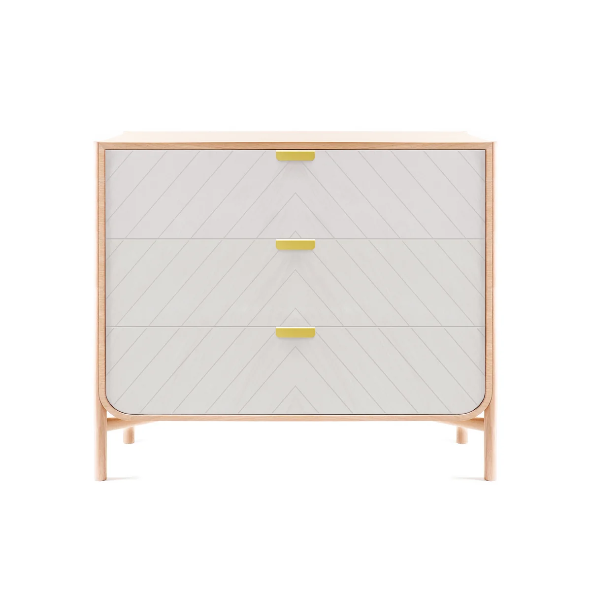 De commode van 100 cm breed heeft drie laden van dezelfde afmetingen, die op verschillende manieren kunnen worden gevuld, afhankelijk van de plaats waar de commode staat. In de slaapkamer kan hij gebruikt worden om kleren in op te bergen, terwijl hij in de studeerkamer gebruikt kan worden om kantoorbenodigdheden in op te bergen. Dankzij het onopvallende design past de ladekast in elke interieurstijl en creëert hij een maritieme flair.