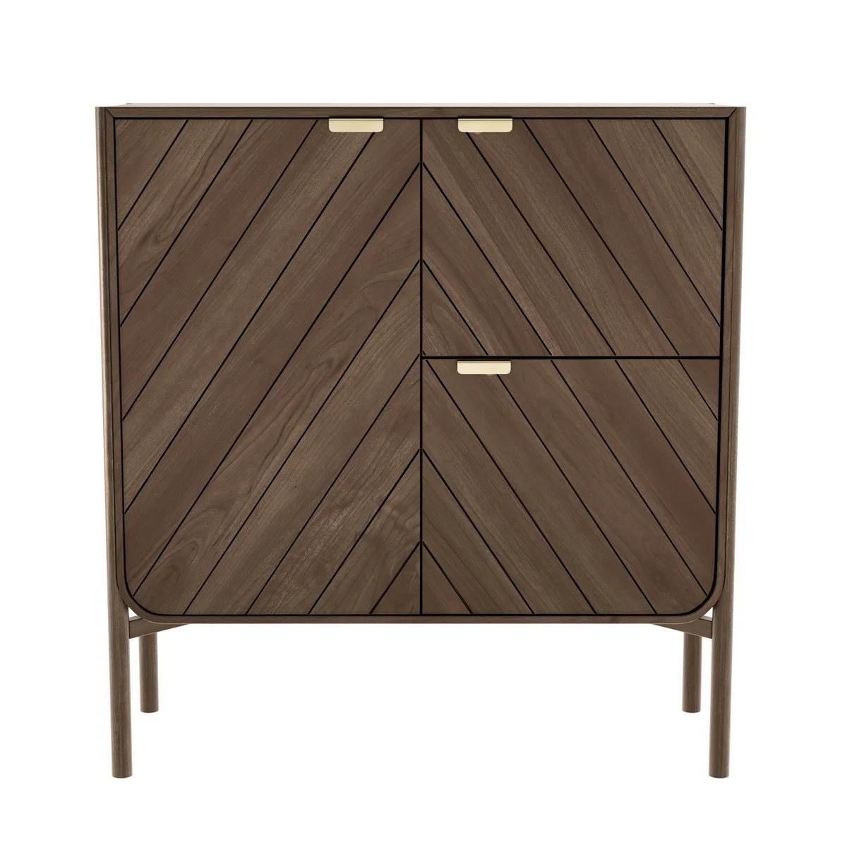 De commode met een lengte van 120 cm heeft drie vakken van verschillende afmetingen waarin allerlei spulletjes en gebruiksvoorwerpen kunnen worden opgeborgen. In de studeerkamer doet de stijlvolle ladekast bijvoorbeeld dienst als archiefkast, terwijl hij in de slaapkamer fungeert als alternatieve kledingkast. Dankzij het eenvoudige maar bijzondere ontwerp past het meubelstuk in elke sfeer en zorgt het voor een verfrissende flair.