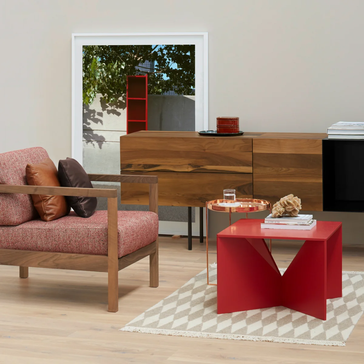 Als onderdeel van de Kramer Edition van e15 is de Calvert salontafel een uniek meubelstuk dat inspireert met een tijdloze uitstraling.