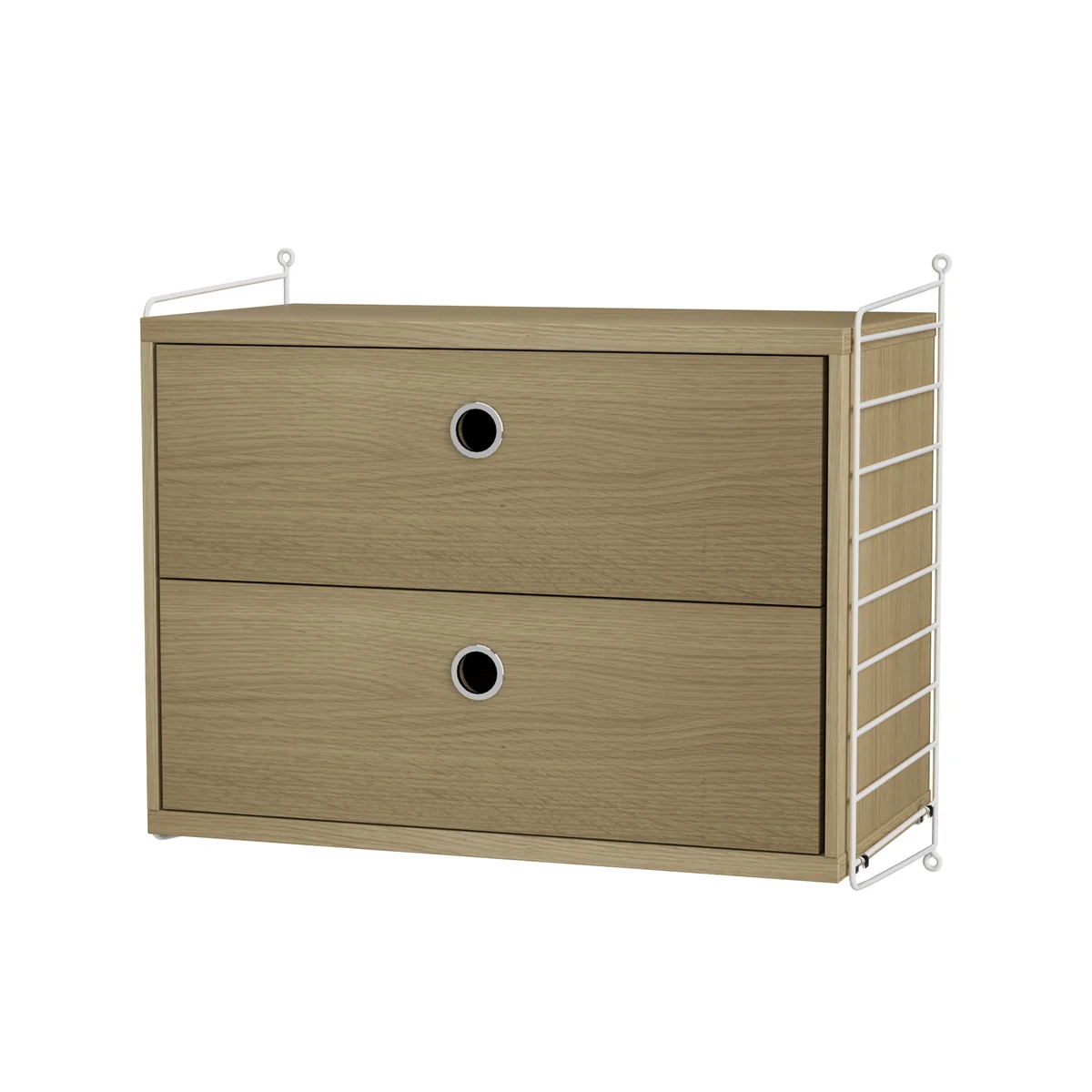 Het nachtkastje van String combineert minimalistisch design met praktische functionaliteit. Met zijn strakke lijnen en modulaire ontwerp past het naadloos in elke slaapkamer. Het nachtkastje biedt ruimte voor boeken, wekkers, lampen of persoonlijke spullen en zorgt ervoor dat alles netjes opgeborgen en binnen handbereik is.