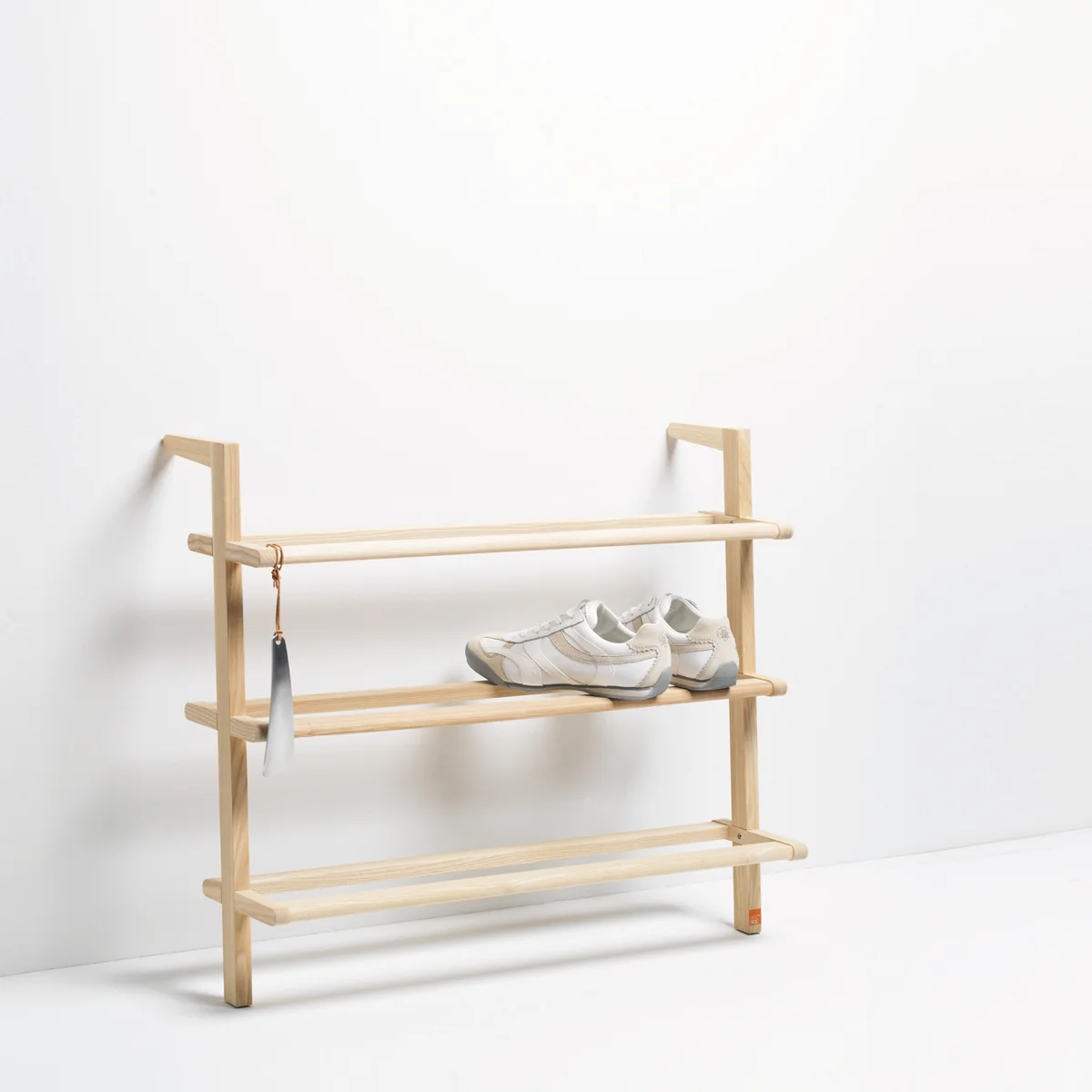 Gaston bestaat uit massief, onbehandeld essenhout en bevat een schoenlepel van metaal.