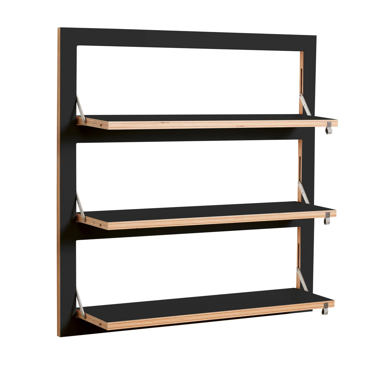 De Fläpps plank van Ambivalenz is een opvouwbare wandplank die in gesloten toestand compact en uiterst plat tegen de muur staat en in uitgeklapte toestand een multifunctioneel meubelstuk wordt. Het wandrek is verkrijgbaar in verschillende lengtes, hoogtes en kleuren met één of meerdere planken. Fläpps Het rek is klaar voor elke situatie en de woonruimte kan individueel en naar eigen behoefte worden ingericht.