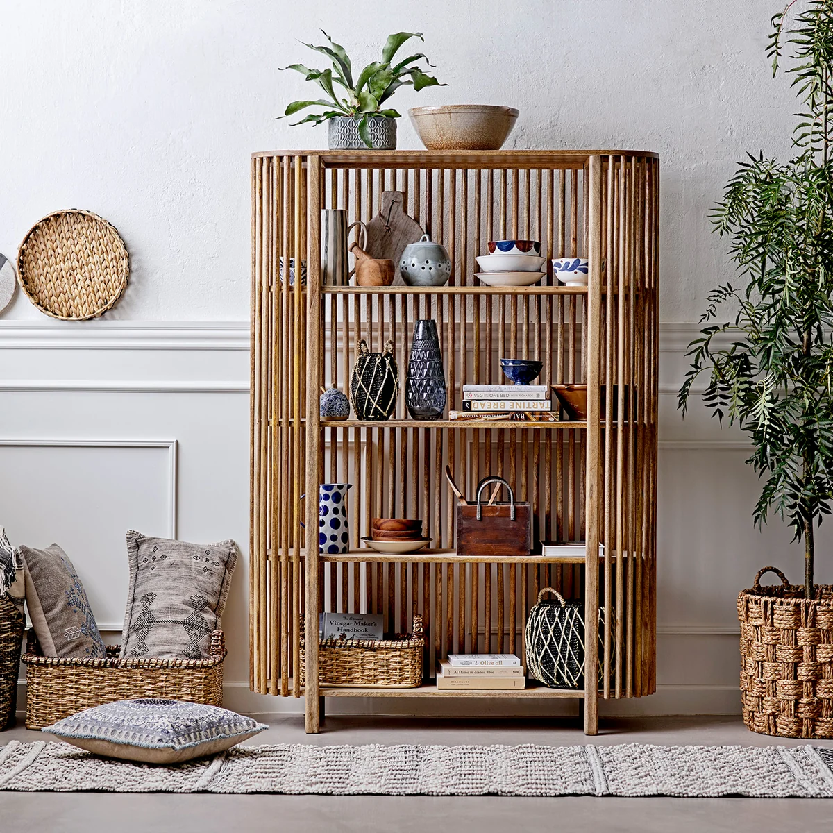 De boekenkast Sali van Bloomingville maakt indruk met zijn ongewone uitstraling. Het komt uit de Creative Collection en is gemaakt van donker gebeitst mangohout. De plank heeft vier planken en biedt dus voldoende ruimte voor boeken, vazen enz. Hij kan prachtig worden gebruikt als kamerscherm of in elke kamer van het huis.