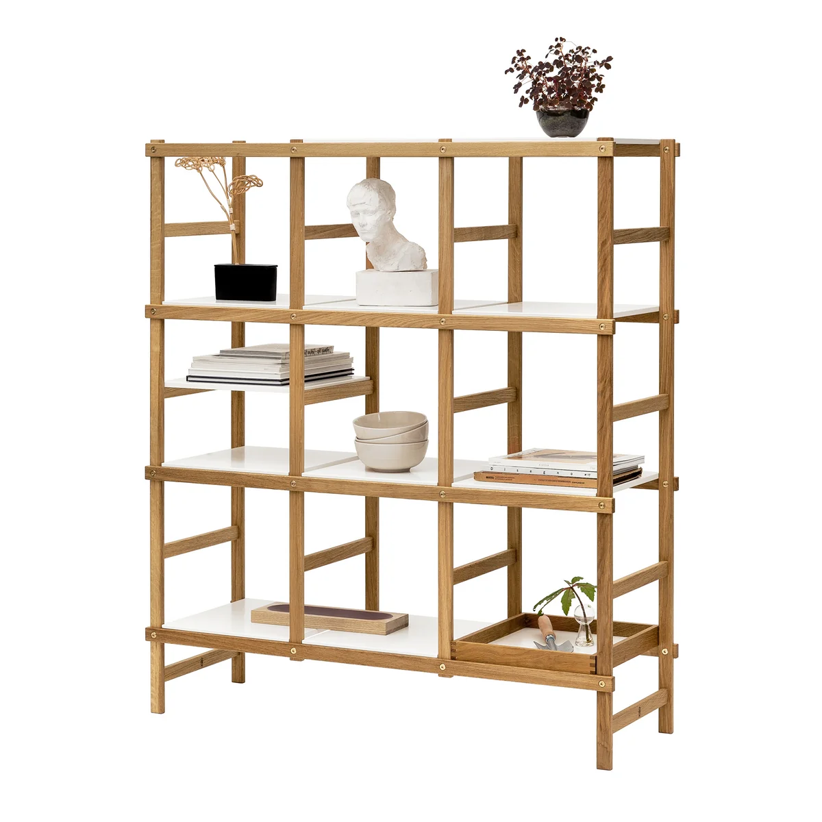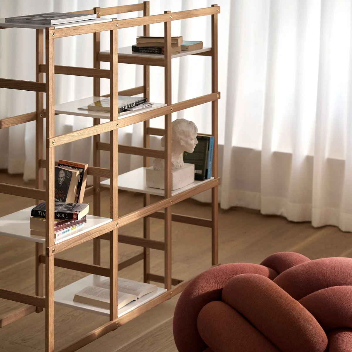 De Frame Het meubelsysteem is verkrijgbaar in verschillende maten en is gemaakt van Scandinavisch massief hout en messing klinknagels.