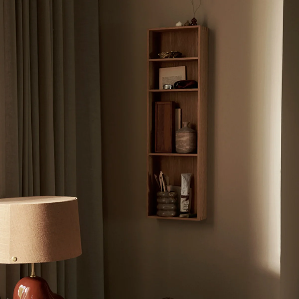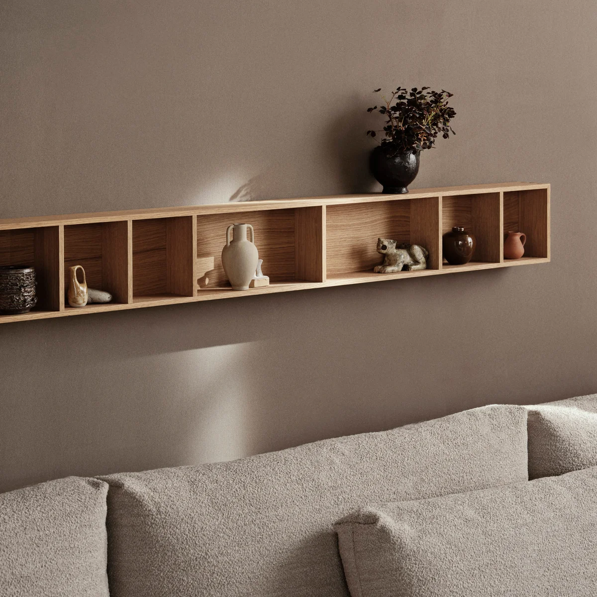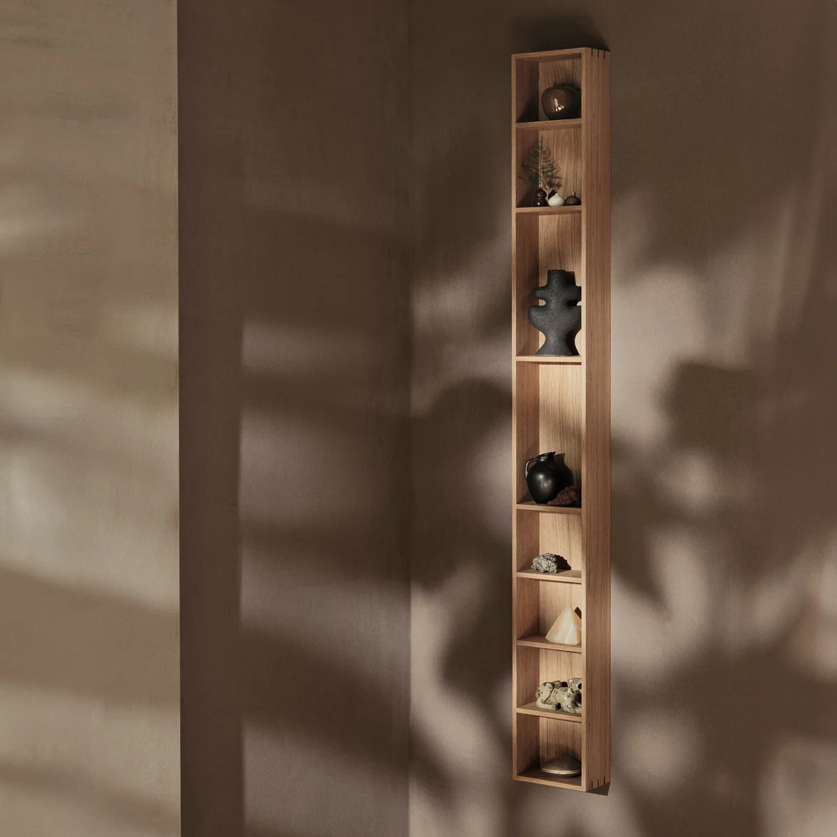 De Bon wandplank van Ferm Living is de ideale manier om je favoriete spullen op te bergen en uit te stallen. Het ontwerp is geïnspireerd op de liefde voor klassiek vakmanschap. De slanke, elegante plank heeft gedetailleerde verbindingen op de hoeken en is gemaakt van eikenfineer met een kern van MDF. Bon De plank kan zowel verticaal als horizontaal worden gemonteerd. Hij kan worden geïnstalleerd in de keuken, badkamer of waar dan ook in huis. Indien nodig afnemen met een vochtige doek en behandelen met olie.