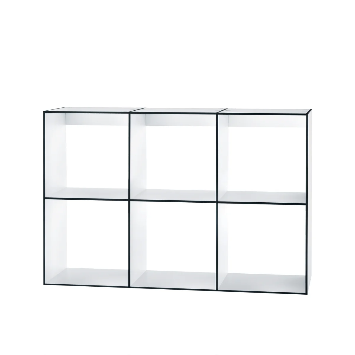De modulaire rekbibliotheek van Hans Hansen in een tijdloos minimalistisch design bestaat uit het duurzame, binnen en buiten aangepaste, hightech-materiaal HPL. Het presenteert de meest verschillende inserts in een eenvoudige en elegante omgeving en is van beide kanten toegankelijk.