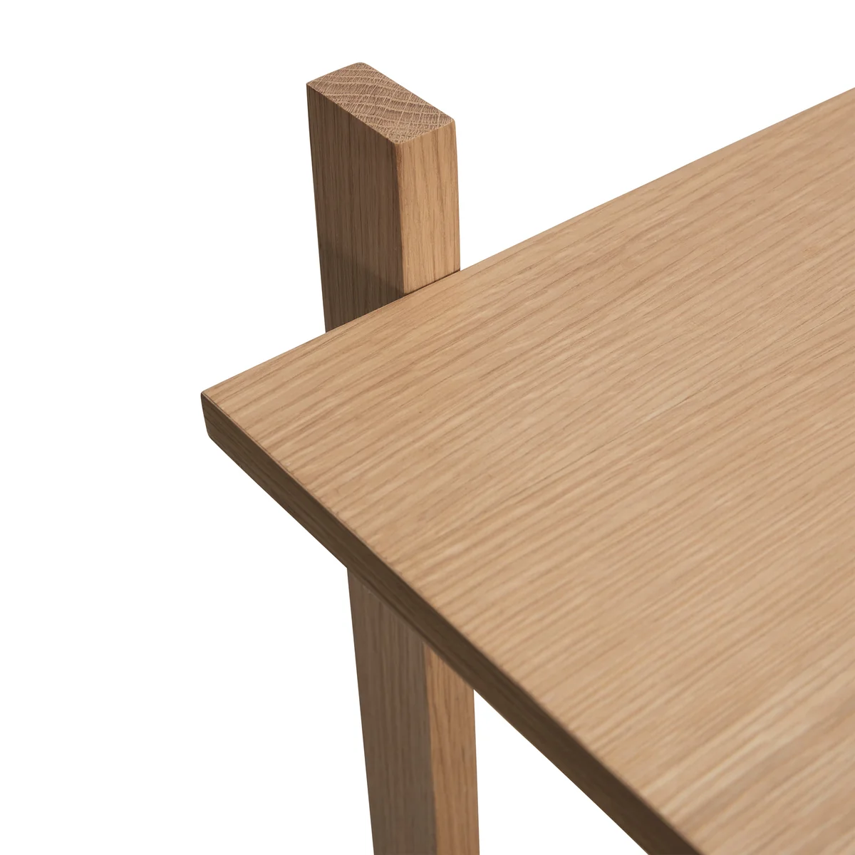 Het open schap met legplanken is gemaakt van FSC®-gecertificeerd eikenhout en eikenfineer en is daardoor bijzonder robuust en duurzaam.