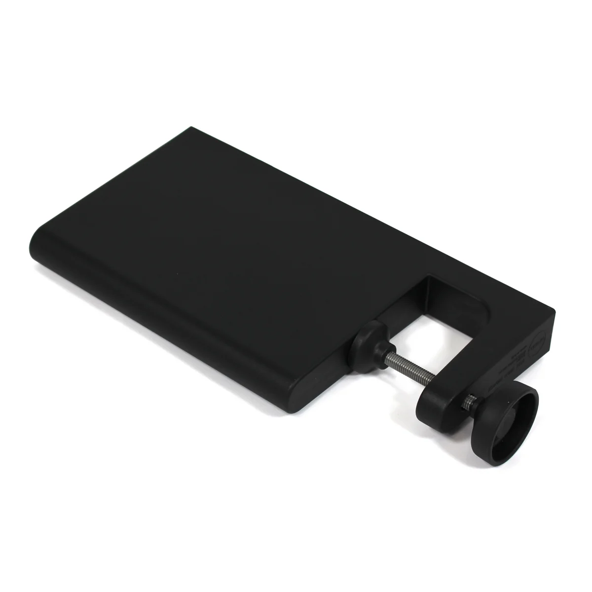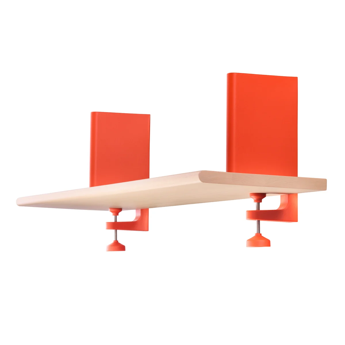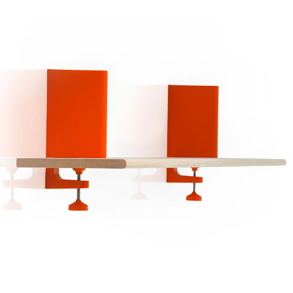 De klemmensteun van glasvezelversterkt polypropyleen is in staat om verschillende platen vast te klemmen die eenvoudigweg tussen de vice-achtige steun worden geklemd. Verschillende platen (uit staal of beukenhout) onthullen de industriële oorsprong van Spike, die met zijn draagvermogen van 40 kg een praktische helper is. Het ronde legbord van marmer zou de edele uitgave vertegenwoordigen.