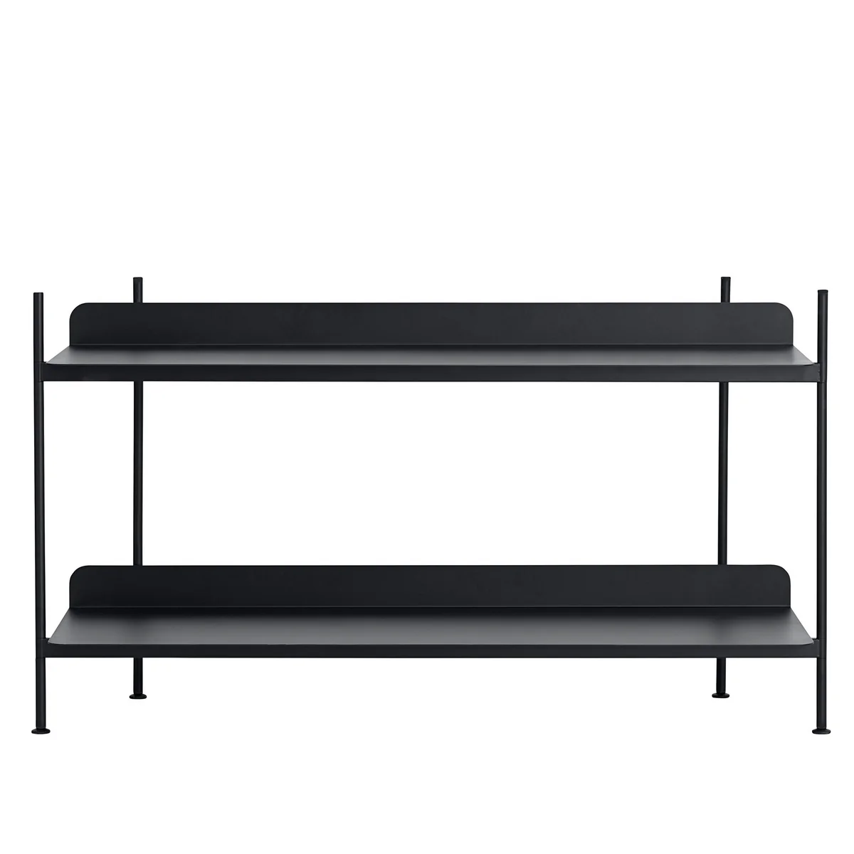 De Compile is de moderne versie van het klassieke rekkensysteem. Eén legbord bestaat uit één legbord en twee buisconstructies, die in drie verschillende hoogtes verkrijgbaar zijn. Op deze manier kunt u voor elk niveau afzonderlijk bepalen hoeveel afstand er tot de volgende plank moet zijn.