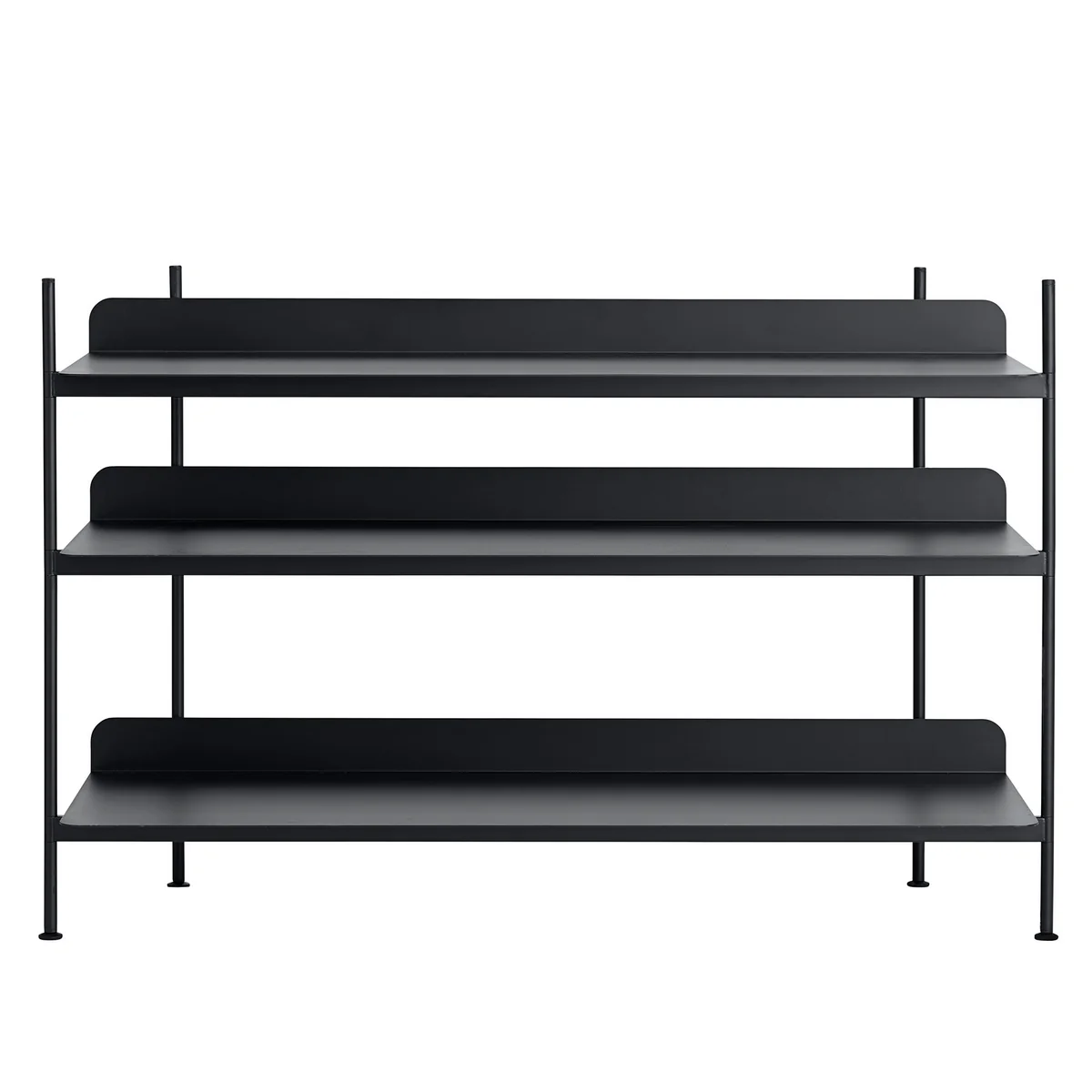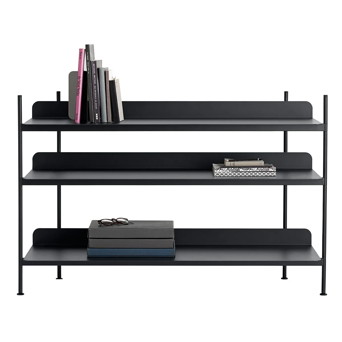 De Compile is de moderne versie van het klassieke rekkensysteem. Eén legbord bestaat uit één legbord en twee buisconstructies, die in drie verschillende hoogtes verkrijgbaar zijn. Op deze manier kunt u voor elk niveau afzonderlijk bepalen hoeveel afstand er tot de volgende plank moet zijn.