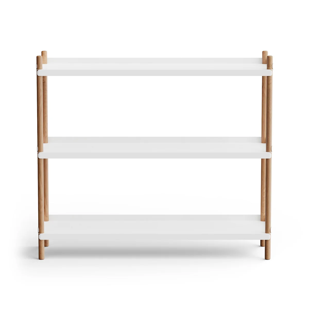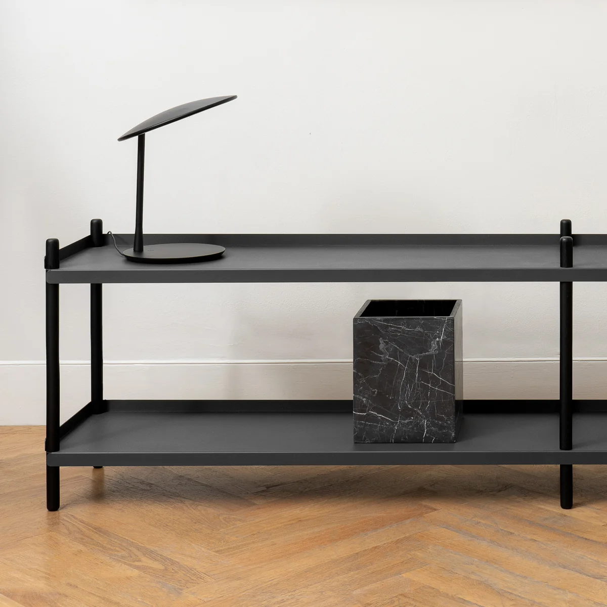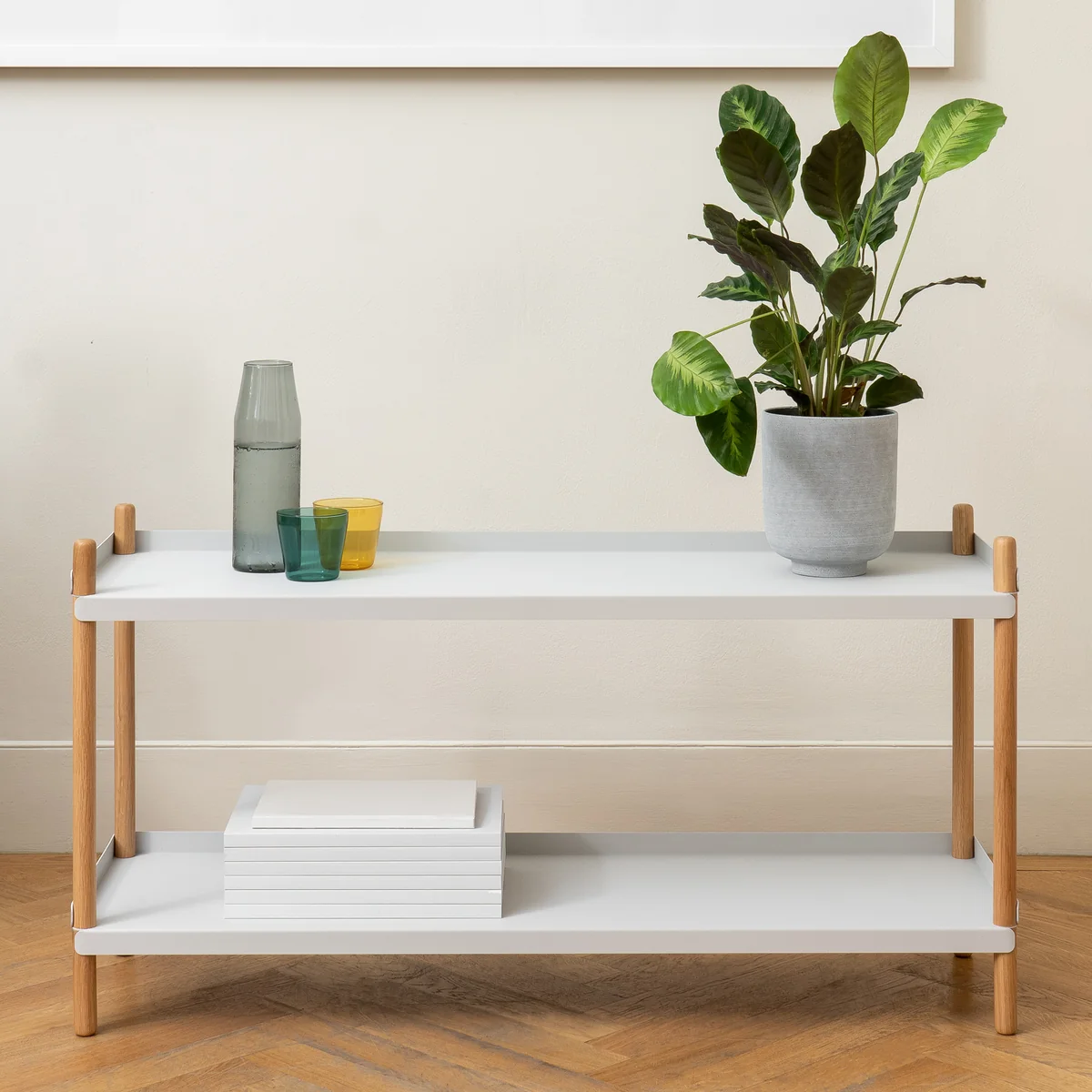 BOLT is verkrijgbaar in verschillende maten, variërend van lage planken voor in de gang of tv-meubels tot grotere, meerlaagse eenheden die geschikt zijn als dressoirs, boekenkasten, bijkeukens of badkamerplanken.