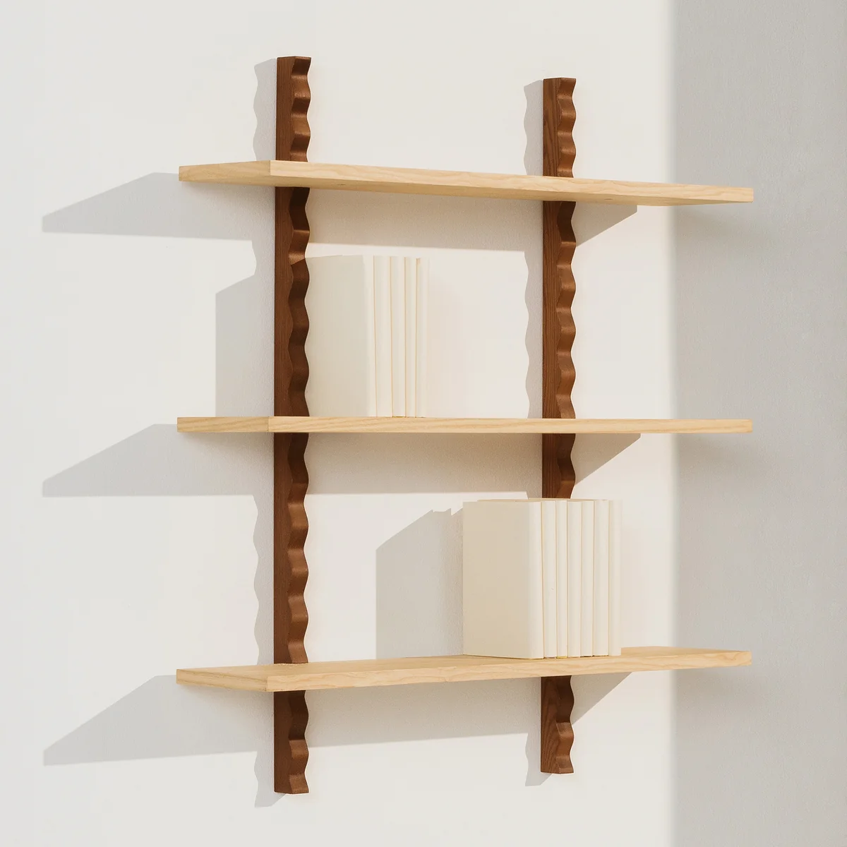 De combinatie van lichtgekleurd essenhout en donkere accenten creëert een stijlvol contrast, terwijl de hoogwaardige afwerking de plank een tijdloze kwaliteit geeft. Als enkele, minimalistische plank of als modulaire, uitbreidbare boekenkast - de ontwerpopties zijn gevarieerd en individueel.