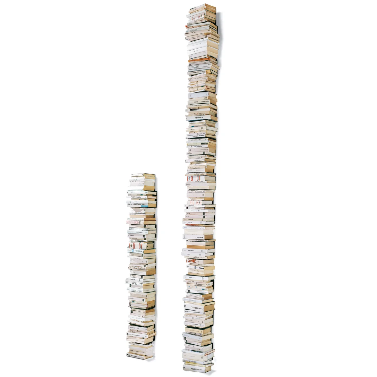 De fatsoenlijk gevormde plank verbergt zich achter de gesorteerde boeken en plaatst uw literatuurcollectie in het middelpunt van de belangstelling. Het ontwerp van de Ptolomeo wandboekenkast van Bruno Rainaldi is geschikt voor de meest uiteenlopende interieurobjecten en biedt een aantrekkelijke en spannende opbergmogelijkheid. Afhankelijk van de hoogte hebben 35 tot 90 boeken ruimte in het gereserveerde rek.