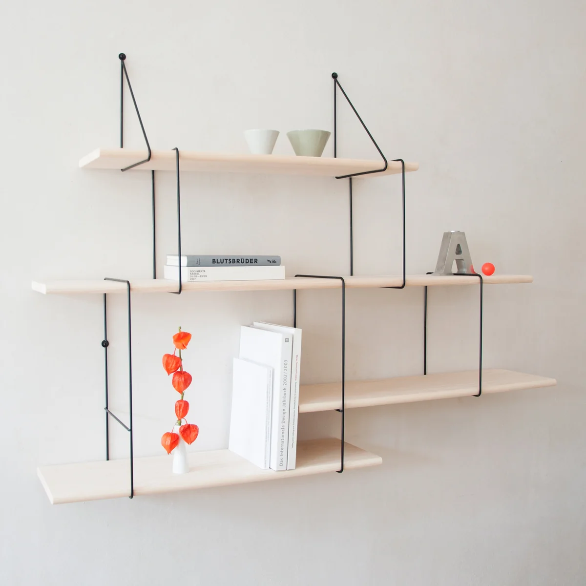 Daarbij overtuigt het Link schap van Studio Hausen met zijn eenvoud en bijzondere functionaliteit. De essenhouten legborden en filigraan hangers van staal zijn individueel combineerbaar.