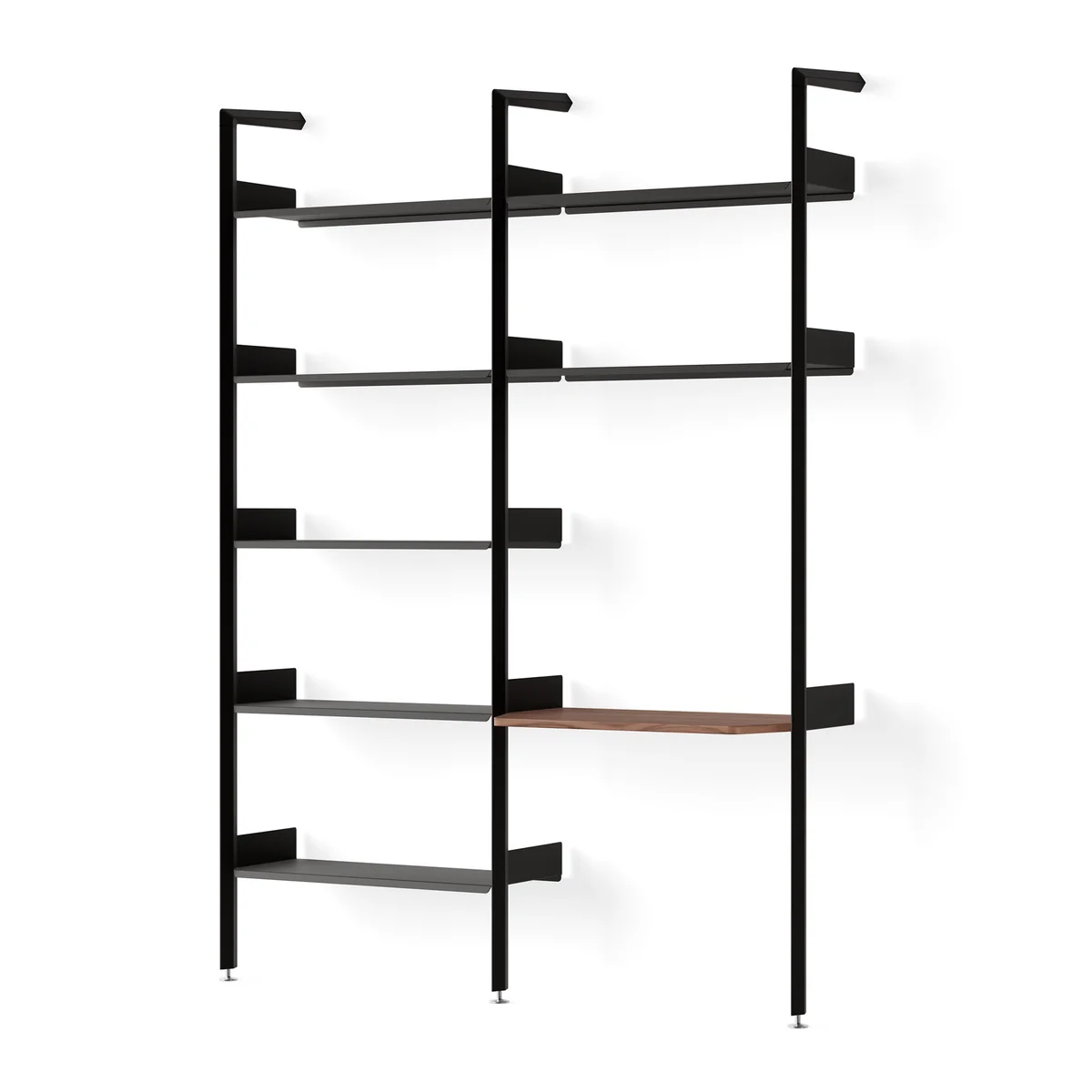 De combinatie van de IF1 en IF5 elementen wordt aangevuld met een geïntegreerd bureaublad, wat betekent dat de kast niet alleen opbergruimte biedt, maar ook een functioneel werkoppervlak. Dankzij het modulaire ontwerp kan het systeem op elk moment worden uitgebreid met extra elementen en legplanken, waardoor het kan meegroeien met de individuele behoeften van de gebruikers en harmonieus past in verschillende woonsituaties.