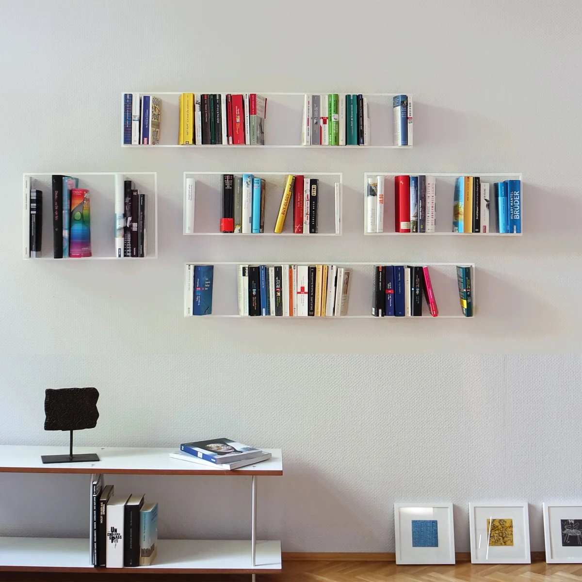 De fabrikant Vonbox creëerde drie verschillende frames volgens het ontwerp van Trapp-Nosek Dietermann, omdat boeken ook in verschillende formaten verkrijgbaar zijn: Zo bestaat er een bijbehorend kader voor paperback boeken, boeken en geïllustreerde boeken. Een levendige, driedimensionale muurschildering die de boeken als een sculptuur in de ruimte integreert, ontstaat door de indeling van de lijsten met de verschillende formaten.