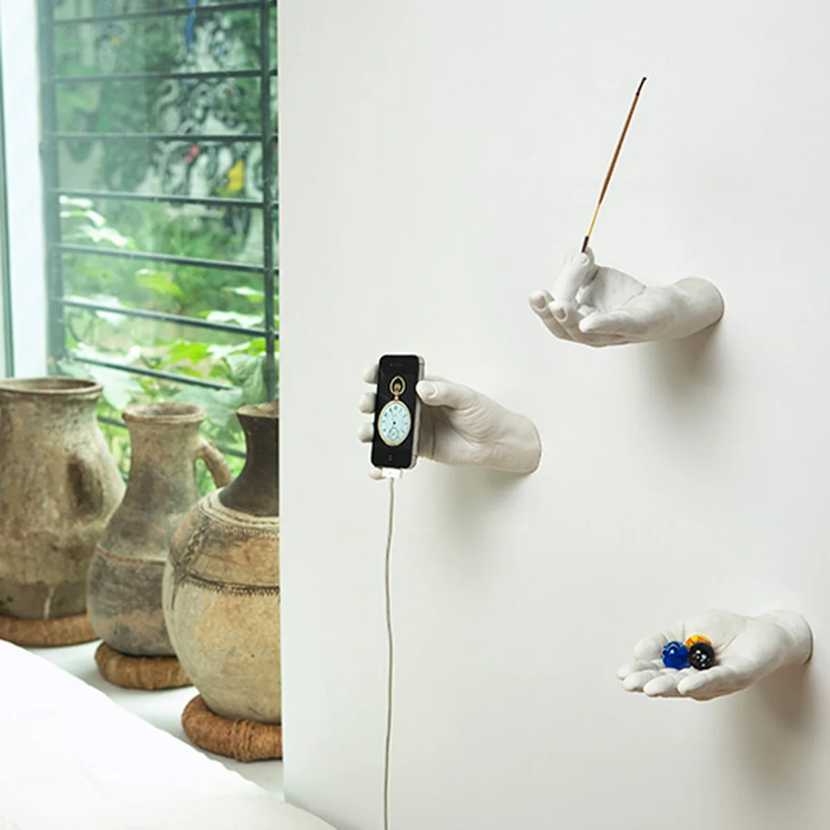 Het Offer Hand Dock ziet er niet alleen decoratief uit, maar is ook perfect geschikt als kleine plank. Of het nu gaat om mobiele telefoons of sleutels - op de volledig geopende en aanbieden van de hand is ruimte voor verschillende items.