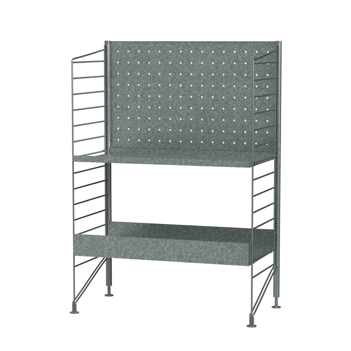 De Outdoor serie bestaat uit wandladders, vloerladders en metalen planken in verschillende maten en breedtes. Ze zijn allemaal gemaakt van gegalvaniseerd staal. Het gegalvaniseerde metaal is bestand tegen alle weersomstandigheden en geeft het String systeem een robuuste uitstraling.