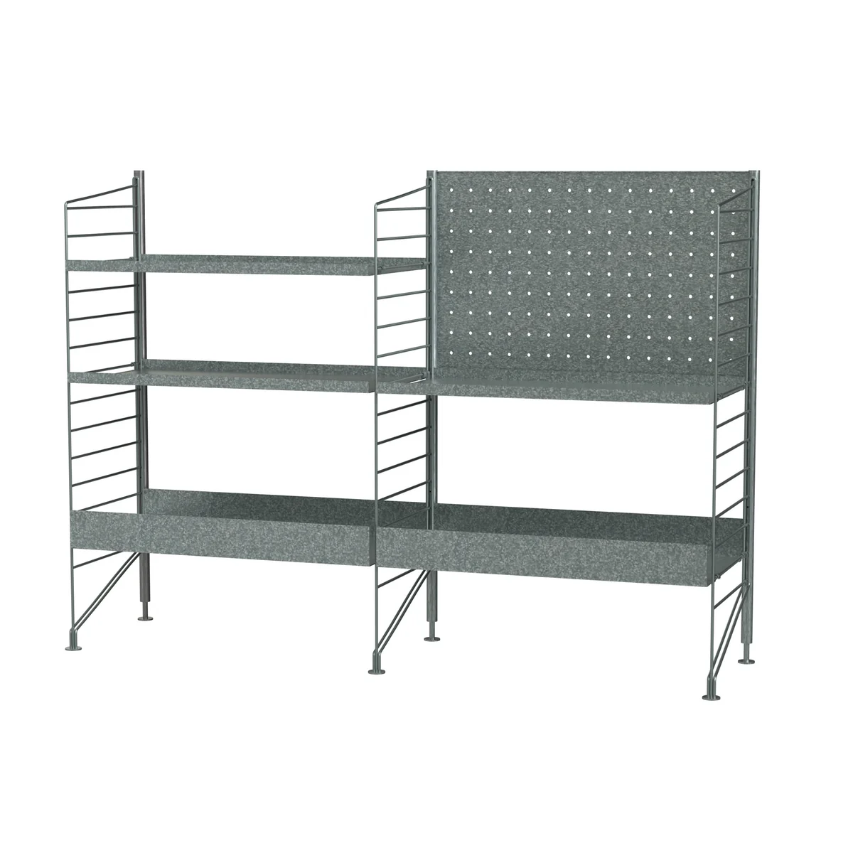 De Outdoor serie bestaat uit wandladders, vloerladders en metalen planken in verschillende maten en breedtes. Ze zijn allemaal gemaakt van gegalvaniseerd staal. Het gegalvaniseerde metaal is bestand tegen alle weersomstandigheden en geeft het String systeem een robuuste uitstraling.