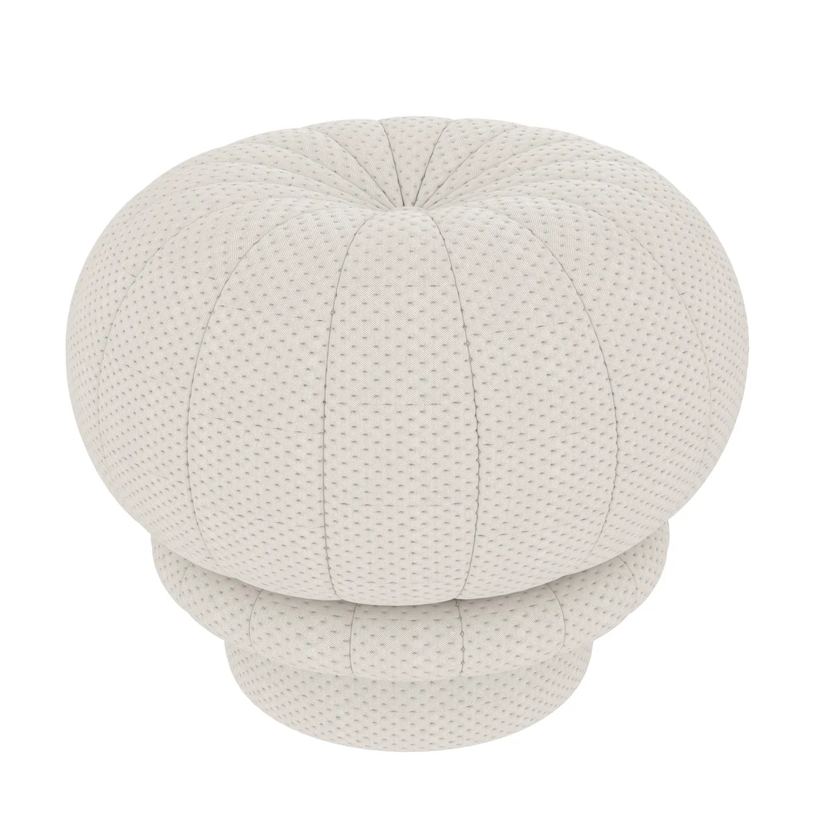 De in Europa gemaakte Claudie poef is gemaakt van vormvast schuim met een hoge dichtheid en is bekleed met een gedeeltelijk gerecyclede polyester stof.