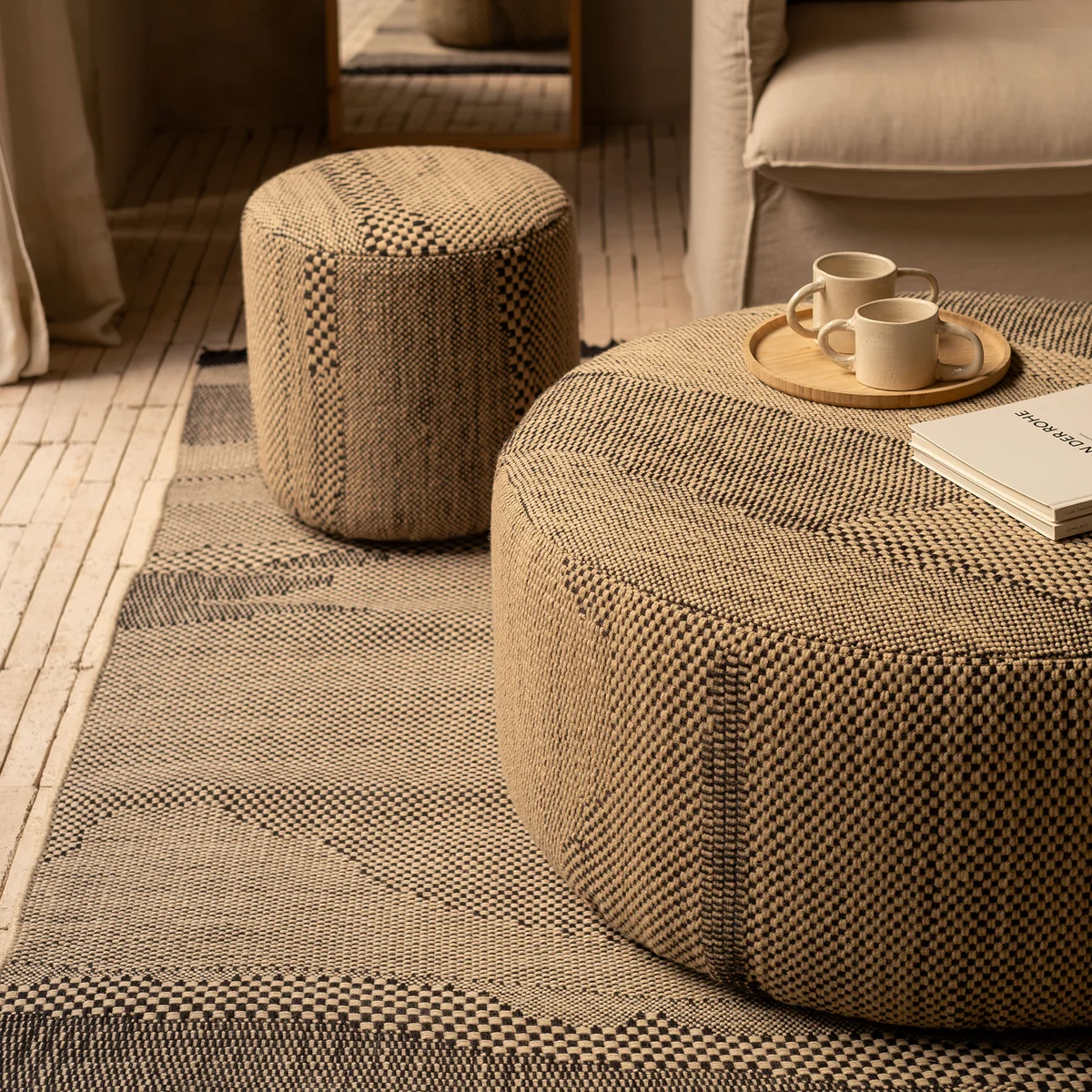 De Wabisabi poefjes brengen de filosofie van het Japanse Wabi-Sabi in de woonkamer: ze vieren het onvolmaakte, het natuurlijke en het vergankelijke. Met hun zachte gevoel, organische structuur en harmonieuze kleurstelling vormen de poefjes een stijlvolle aanvulling op elk interieur en creëren ze een sfeer van rust. Ze zijn gemaakt van 100% Nieuw-Zeelandse wol en bieden niet alleen comfort, maar ook vakmanschap en stijlvolle veelzijdigheid. De poefjes kunnen moeiteloos gecombineerd worden met vloerkleden uit de gelijknamige collectie.