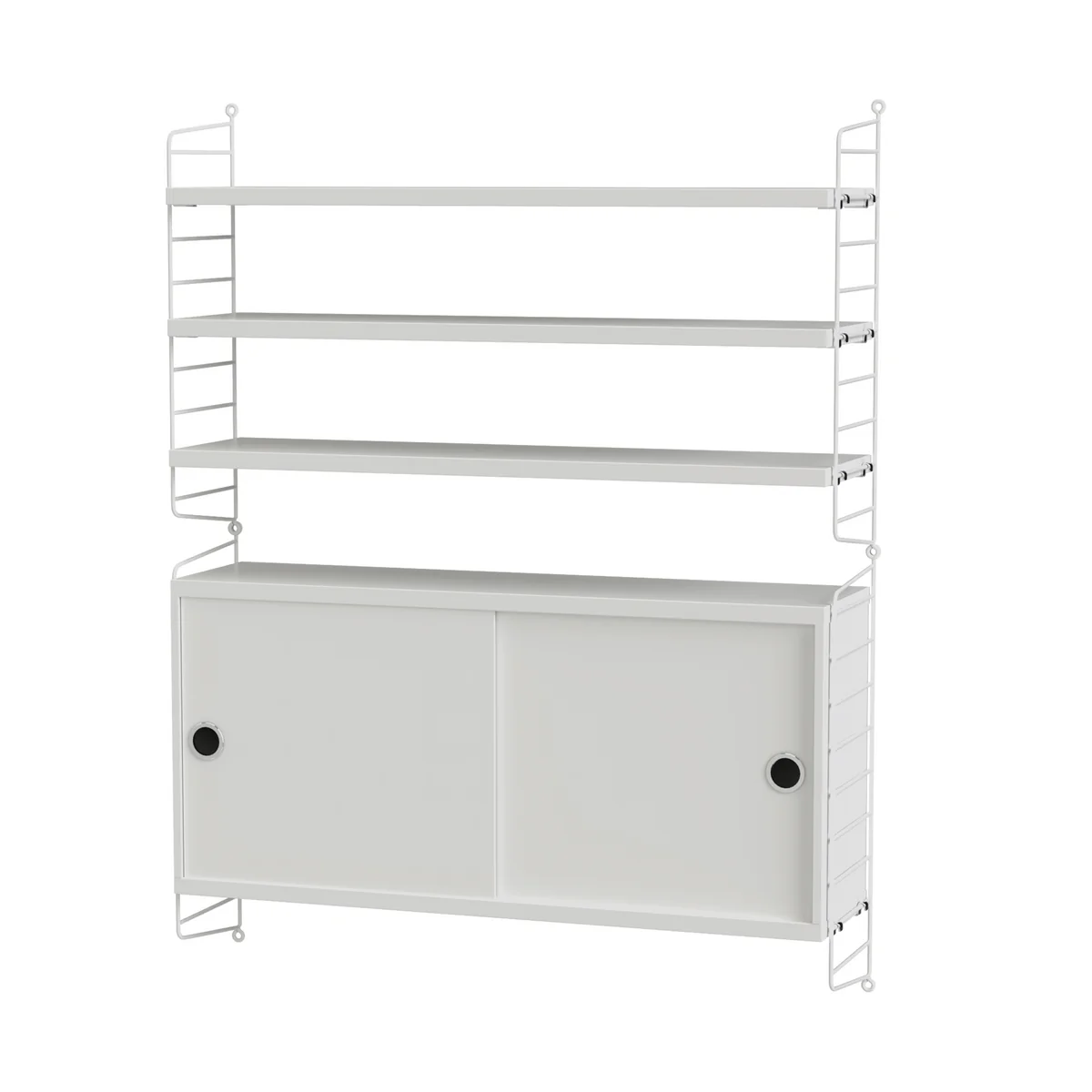 De wandplank met kast van String combineert stijlvol design met praktische opbergruimte. De iconische String -constructie biedt open planken voor decoratieve items of boeken, terwijl de geïntegreerde kast opbergruimte biedt voor alles wat discreet opgeborgen moet worden. Met zijn tijdloze, Scandinavische design past hij perfect in woonkamers, kantoren of gangen.