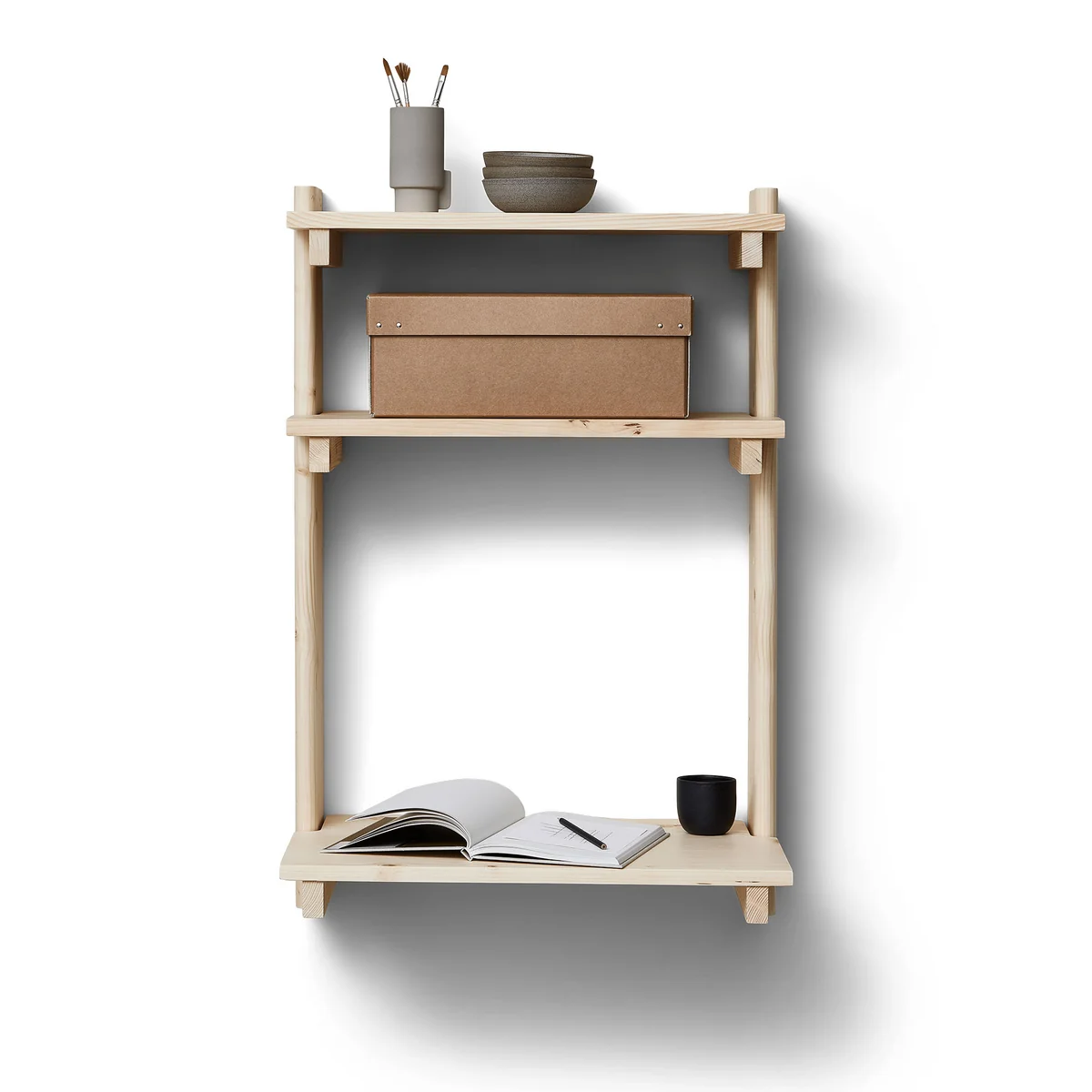 De Beam wandkast wordt gekenmerkt door een stabiele houten balk gemaakt van massief, duurzaam geproduceerd hout. Deze constructie geeft het een zwevend uiterlijk en maakt het bijzonder ruimtebesparend. Het royale werkoppervlak biedt genoeg ruimte voor een laptop, notities en accessoires, terwijl het minimalistische ontwerp een rustige, gefocuste werksfeer creëert.