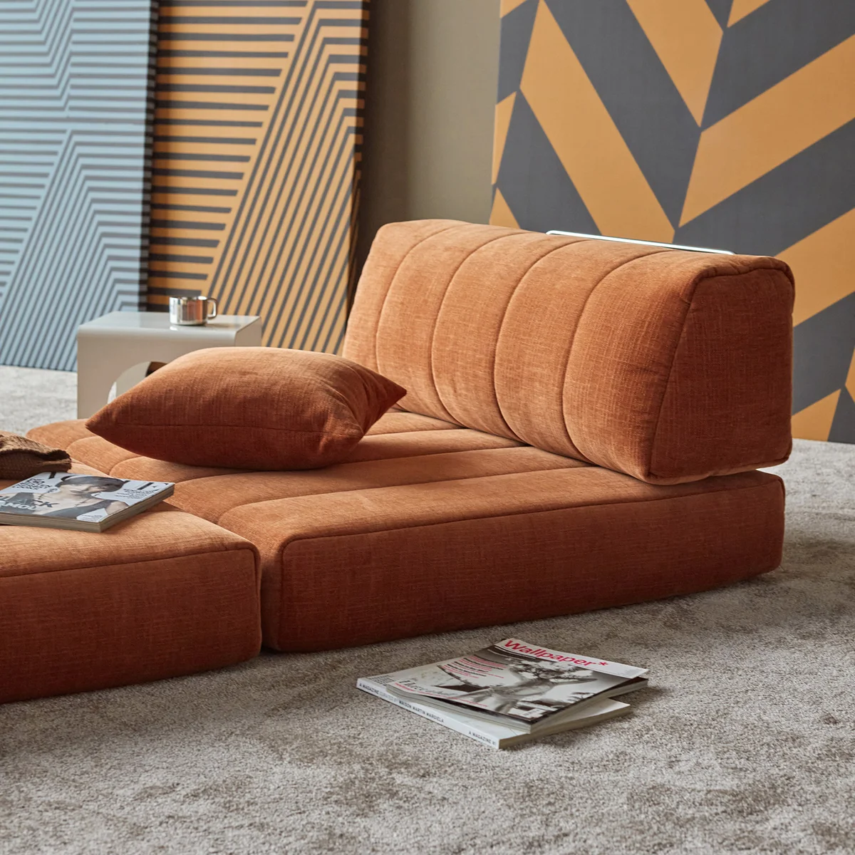 Kenmerkend zijn de rugkussens, die een bijzonder ontspannen zit- en ligpositie mogelijk maken. Ze creëren een knus, omhullend effect en benadrukken het loungekarakter van de bank. Tegelijkertijd kunnen de losse kussens naar wens flexibel worden gerangschikt en verplaatst.