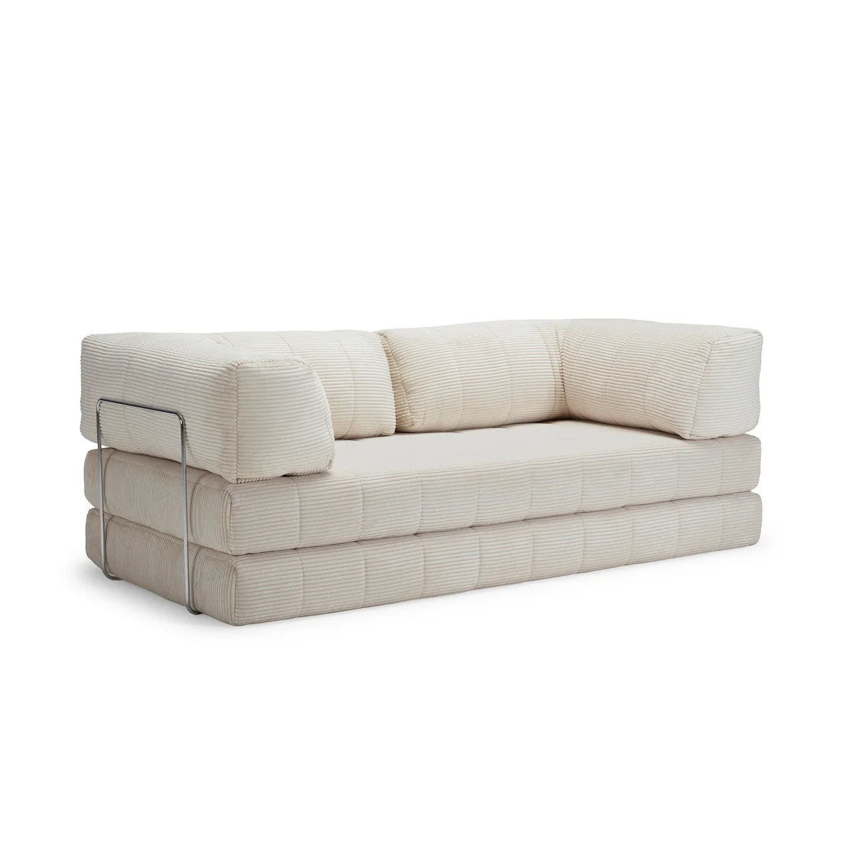 De slaapbank is gebaseerd op een combinatie van twee royale matrasmodules die eenvoudig omgebouwd kunnen worden. Zo ontstaat in een handomdraai een groot slaapoppervlak dat kan worden gebruikt als tweepersoonsbed of als twee eenpersoonsbedden - ideaal voor gasten of multifunctionele kamers.
