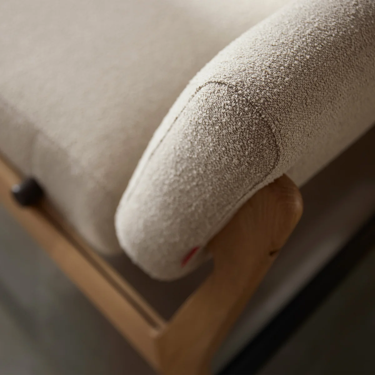 Het Nolis dagbed van Innovation Living is ontworpen door Lukas & Oliver WeissKrogh en combineert gestoffeerd comfort met ingetogen elegantie. Het is ideaal om op te zitten, te ontspannen of te loungen en past moeiteloos in moderne woonruimtes.