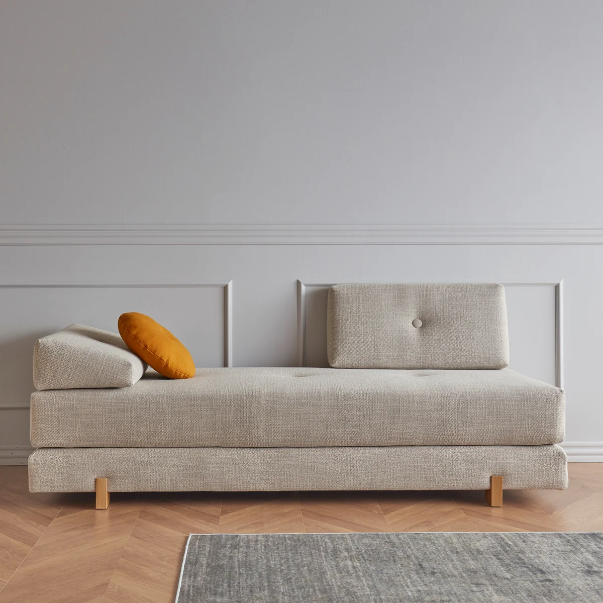 De Sigmund Drip slaapbank van Innovation Living is een echte allrounder. In een paar eenvoudige stappen kan hij van een klassieke slaapbank veranderd worden in een tweepersoonsbed of twee aparte eenpersoonsbedden - ideaal voor flexibele woonsituaties. De afgeronde pocketveringmatrassen kunnen op verschillende manieren worden gerangschikt en bieden veel zit- en ligcomfort. Twee verplaatsbare kussens vullen het ontwerp aan en zorgen voor extra ondersteuning en gezelligheid.