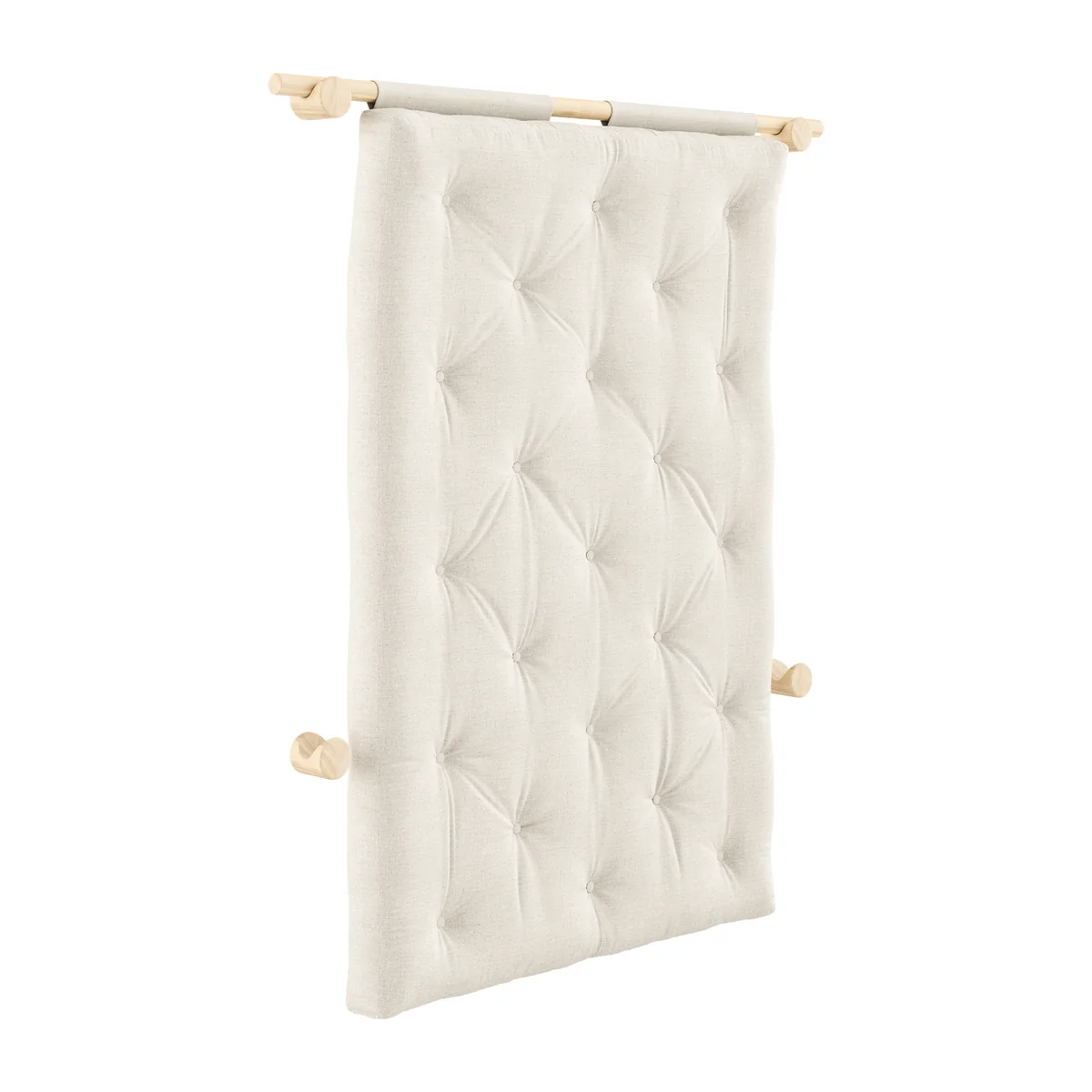 De Hooked slaapbank van Karup Design is een veelzijdig meubelstuk dat modern, ruimtebesparend wonen opnieuw definieert. Met zijn slimme wandconcept bestaat hij uit een royale Bravo matras (135 x 200 cm), stevige wandbeugels en een stijlvolle houten stang waaraan de matras wordt bevestigd. Zo ontstaat overdag een minimalistische bank met Scandinavische lichtheid - en 's nachts een volwaardig bed voor een goede nachtrust.