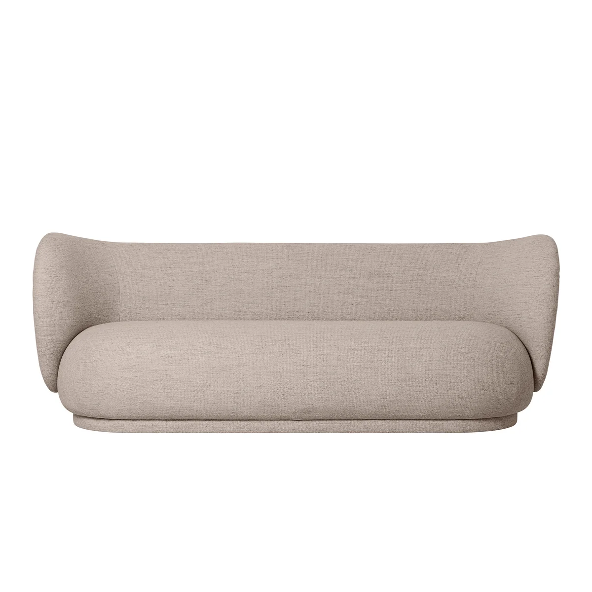De Rico Sofa van Ferm Living wordt gekenmerkt door de weelderige bekleding die uitnodigt om te ontspannen. De licht gebogen rugleuning, die vloeiend overgaat in de armleuningen, lijkt de gebruiker zachtjes te omarmen en zorgt voor een knusse uitdrukking. Dit wordt nog versterkt door de diepe zitting. De bank heeft helemaal geen poten en heeft in plaats daarvan een volumineuze stoffering tot aan de vloer.
