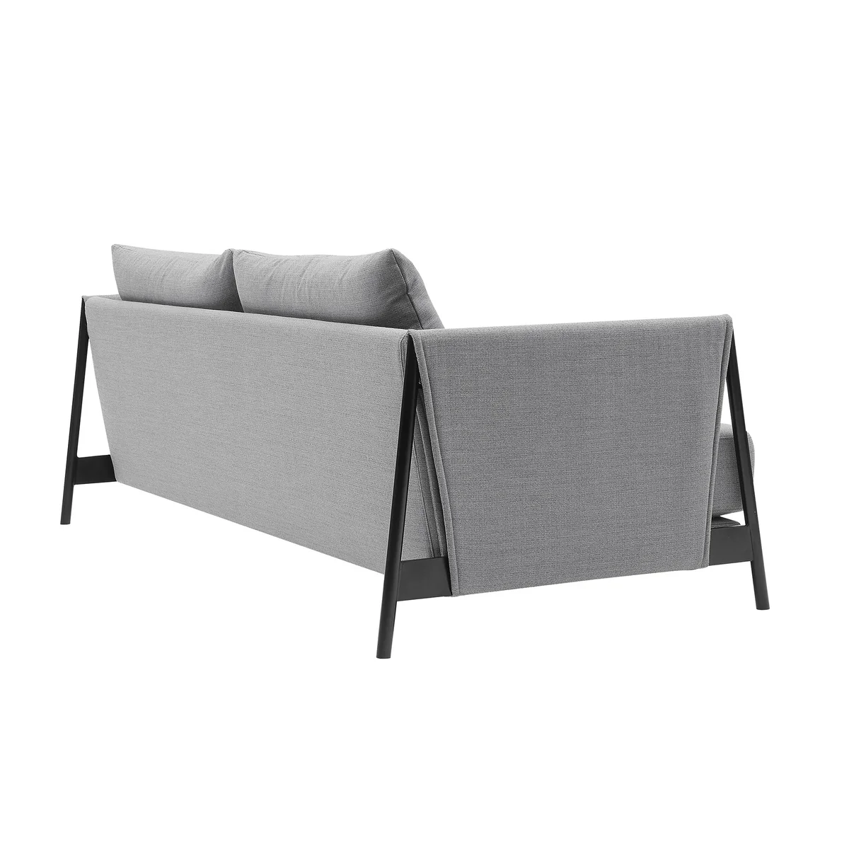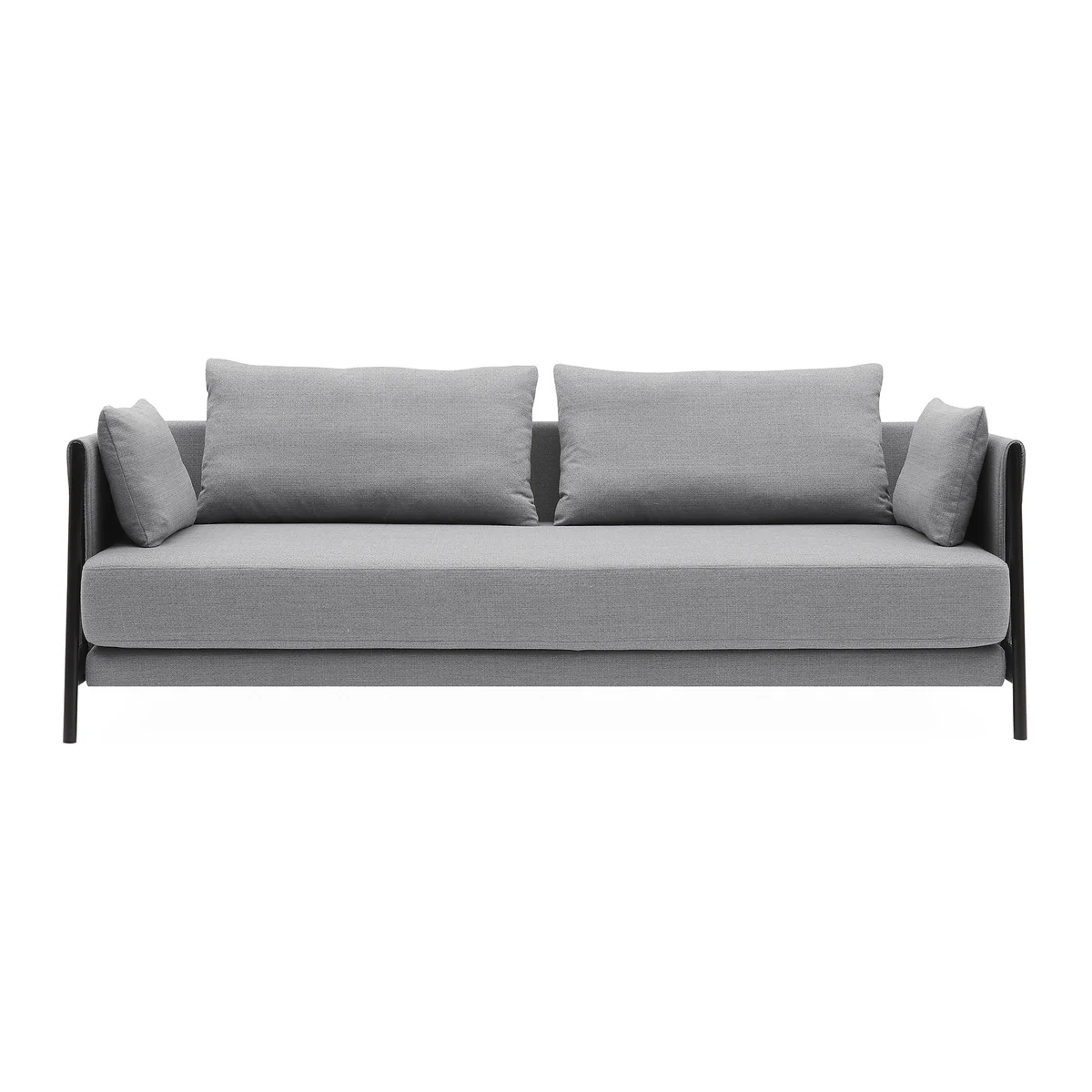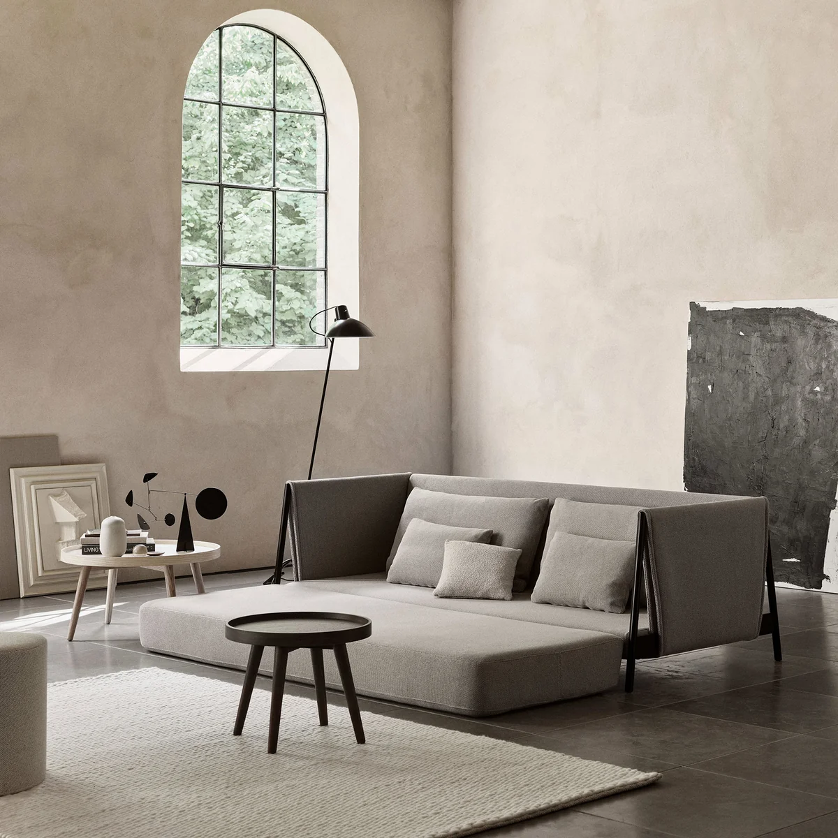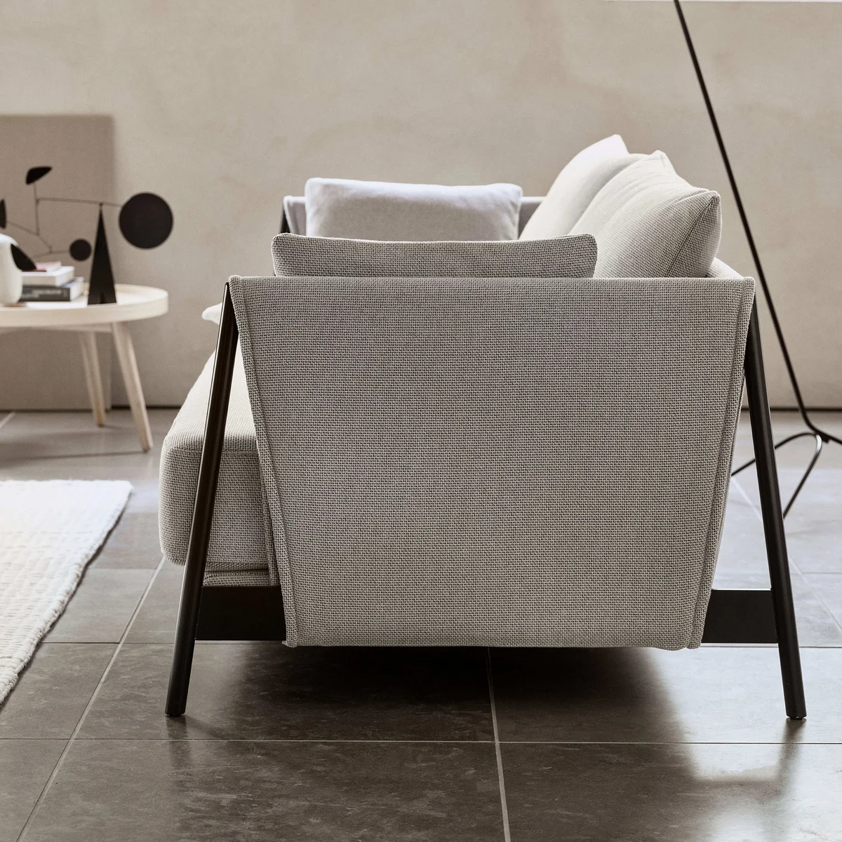 Madison Softline from is een moderne en ongecompliceerde slaapbank. & De bank van Müller Wulff straalt ongedwongen elegantie uit met zijn met pure stof beklede stalen armleuningen en weelderige rugkussens met taps toelopende naden. Als bank nodigt hij uit om te ontspannen en te blijven hangen. s Nachts kan de bekleding van de bovenste zitting naar voren worden geklapt om een bed voor gasten te creëren met een slaapoppervlak van 143 x 200 cm.