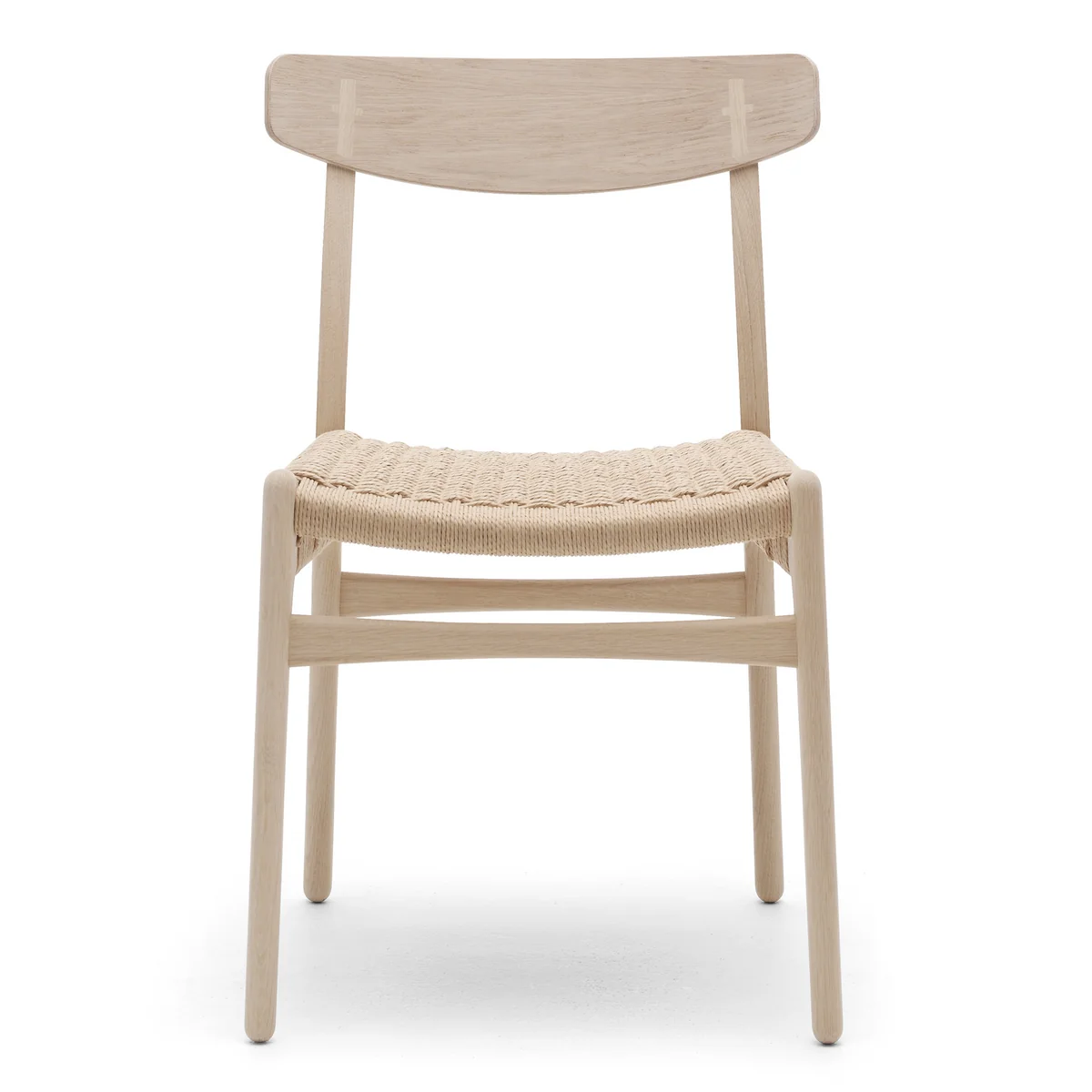 De CH23 De stoel is ontworpen door Hans J. Wegner in 1950 en weerspiegelt de passie van de ontwerper voor klassiek vakmanschap. Tot op de dag van vandaag heeft de stoel niets van zijn charme verloren en vindt hij dankzij zijn eenvoudige vormgeving zijn plaats in zowel klassieke als moderne omgevingen. Het strakke silhouet wordt gekenmerkt door duidelijke lijnen, maar oogt helemaal niet sober dankzij de afgeronde randen en deels gebogen contouren.
