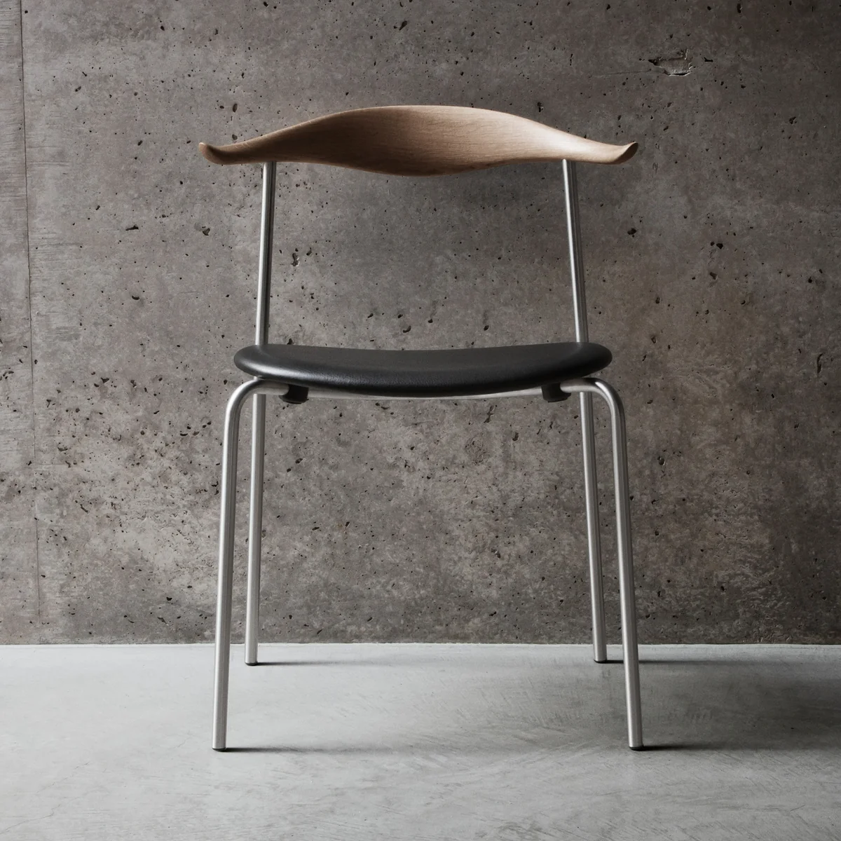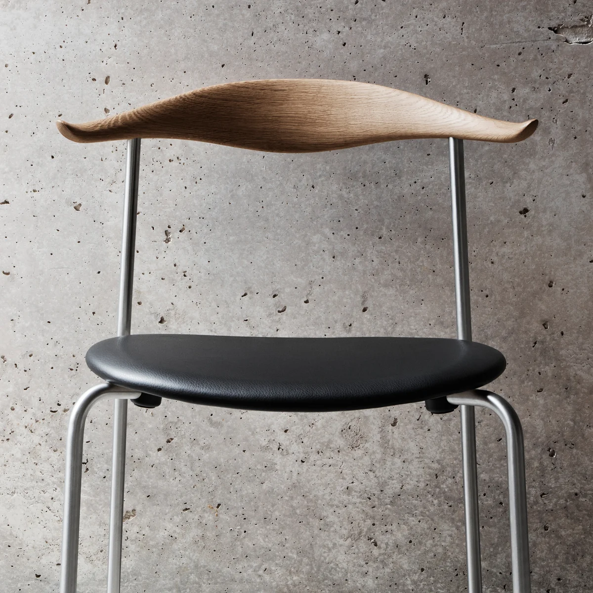 De ovaalvormige zitschaal van de CH88P rust op een stalen frame met rechte poten. Door deze bijzondere combinatie van materialen in combinatie met een minimalistische vormentaal ontstaat een licht ogende stoel waarin natuurlijke vormen worden gecombineerd met technische precisie. Dankzij het stapelbare ontwerp is de nieuwe editie van de Carl Hansen CH88P biedt een extra voordeel.