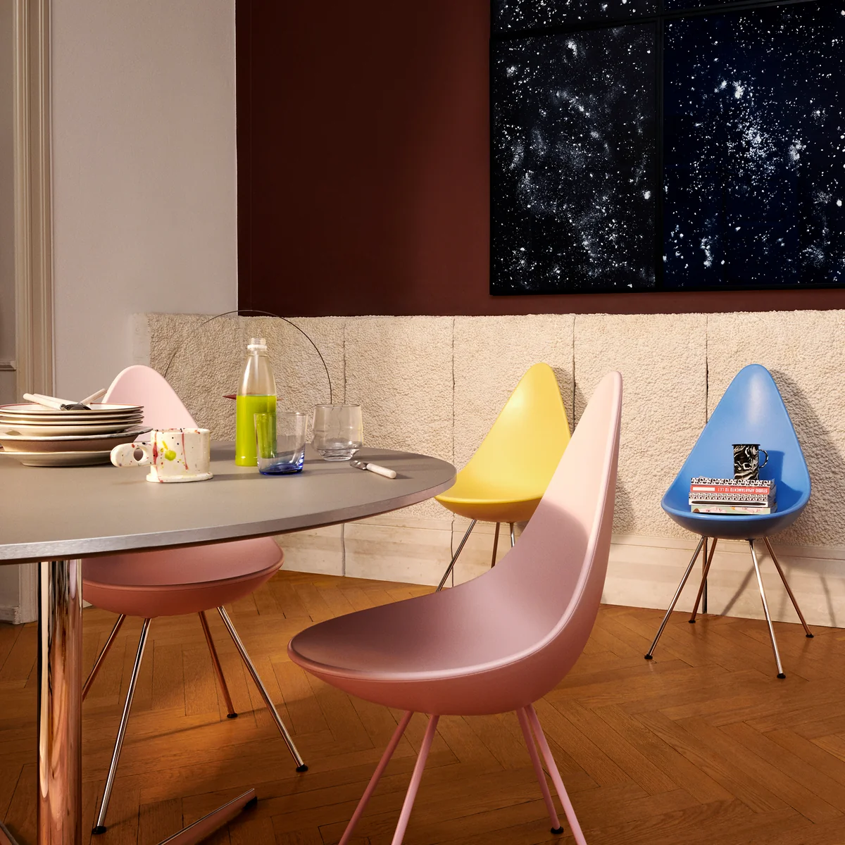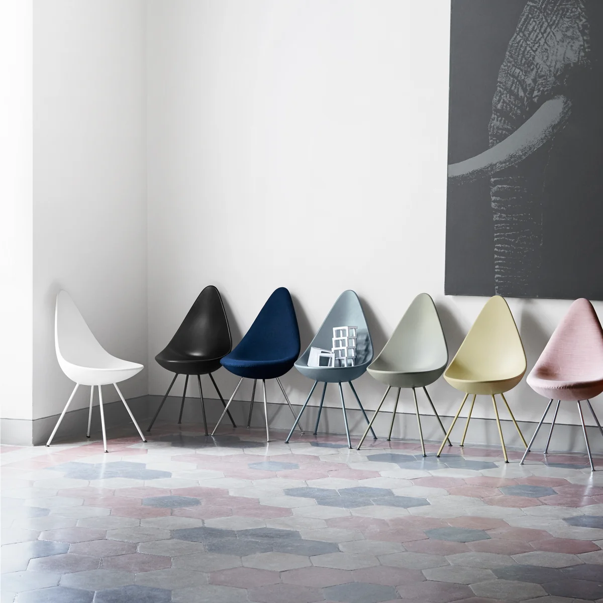 De Fritz Hansen Drop stoel is verkrijgbaar in een groot aantal kleuren en materialen. Daardoor past hij perfect in elke omgeving.