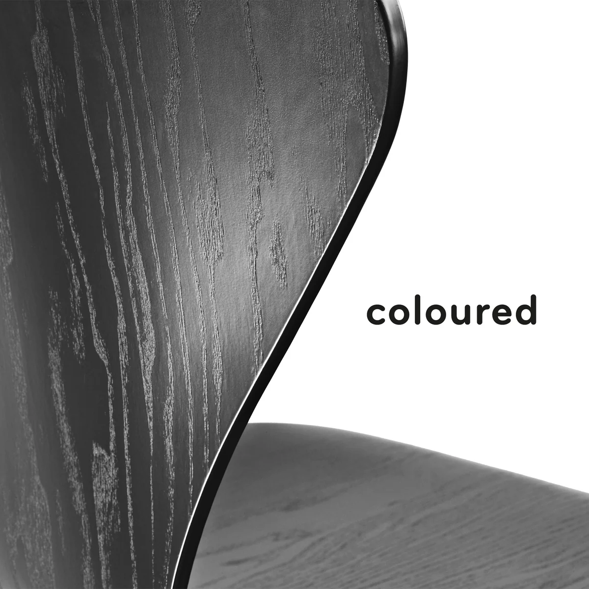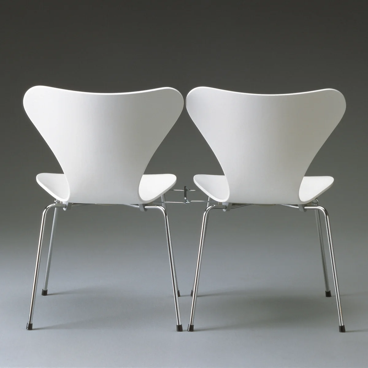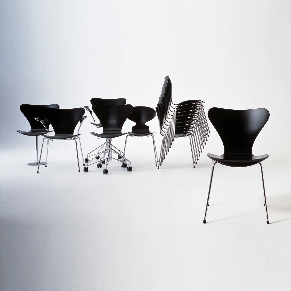 De Series 7 stoel wordt nu geproduceerd door Fritz Hansen op basis van de originele ontwerpen van Arne Jacobsen. De zacht gebogen zitschaal is verkrijgbaar in verschillende kleuren.