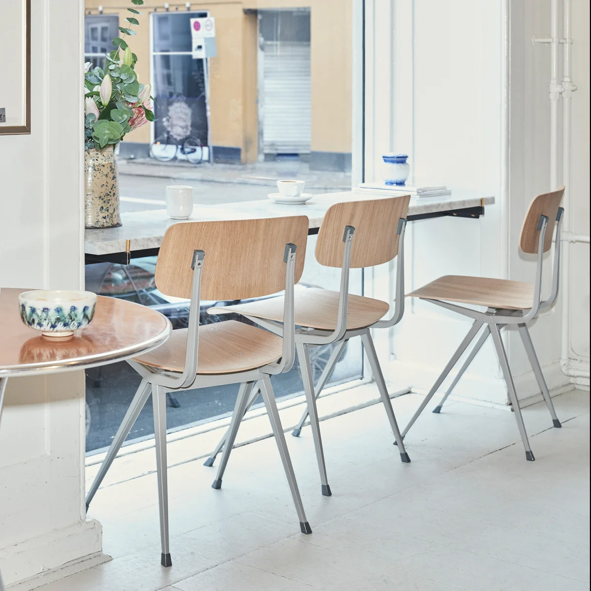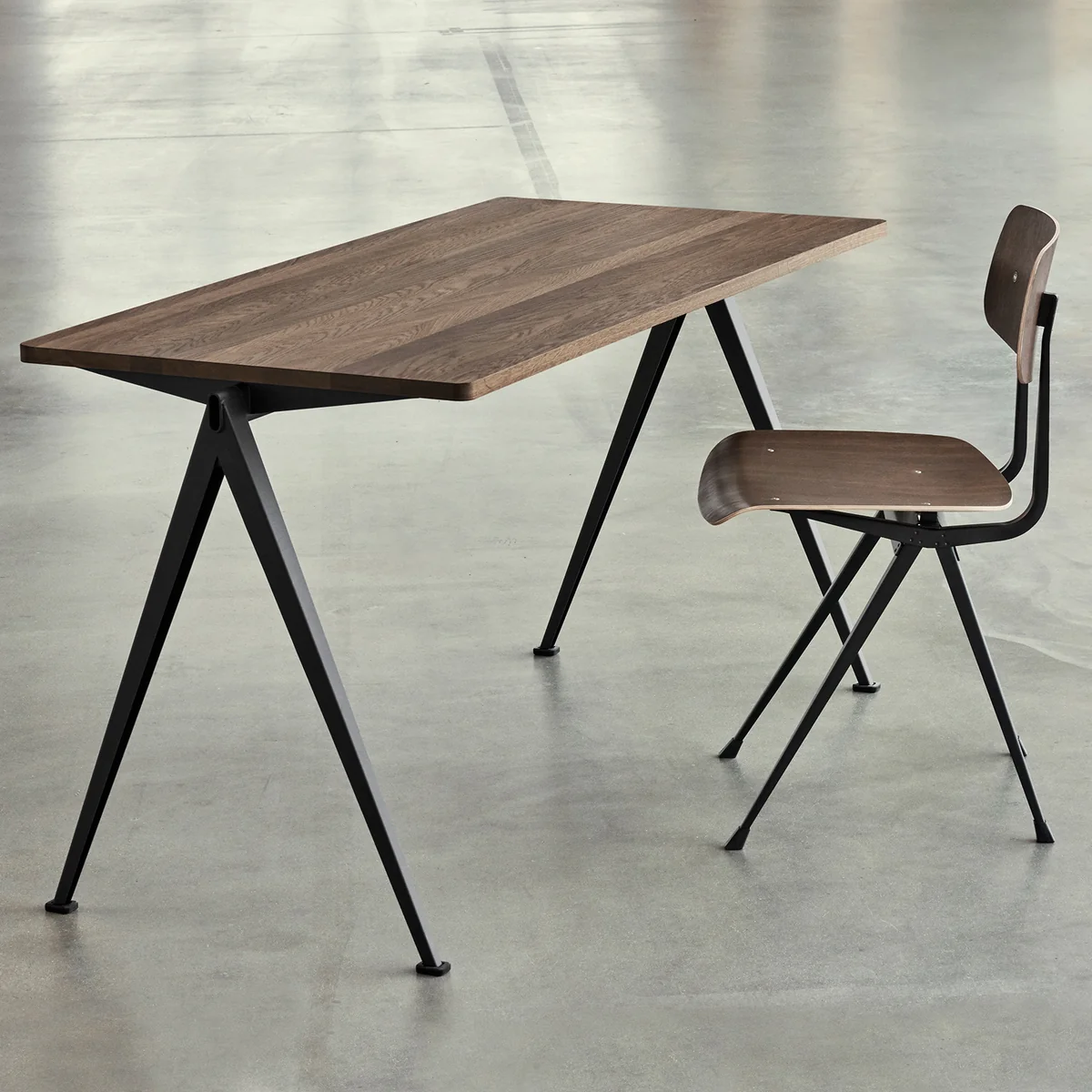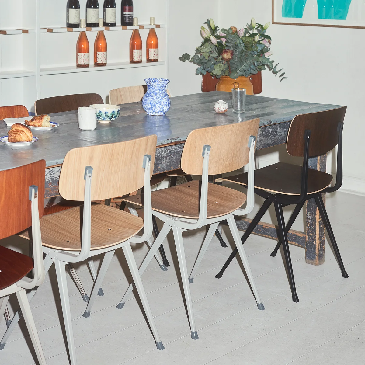 De Result De stoel werd oorspronkelijk in 1958 ontworpen door Friso Kramer en Wim Rietveld in Nederland. De bijpassende Pyramid collectie volgde een jaar later. Voor de nieuwe editie werkt HAY samen met Ahrend, de oorspronkelijke fabrikant van het meubilair.