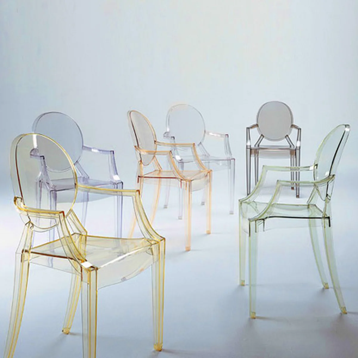 De ghost chair van Philippe Starck wordt door Kartell aangeboden in verschillende varianten.