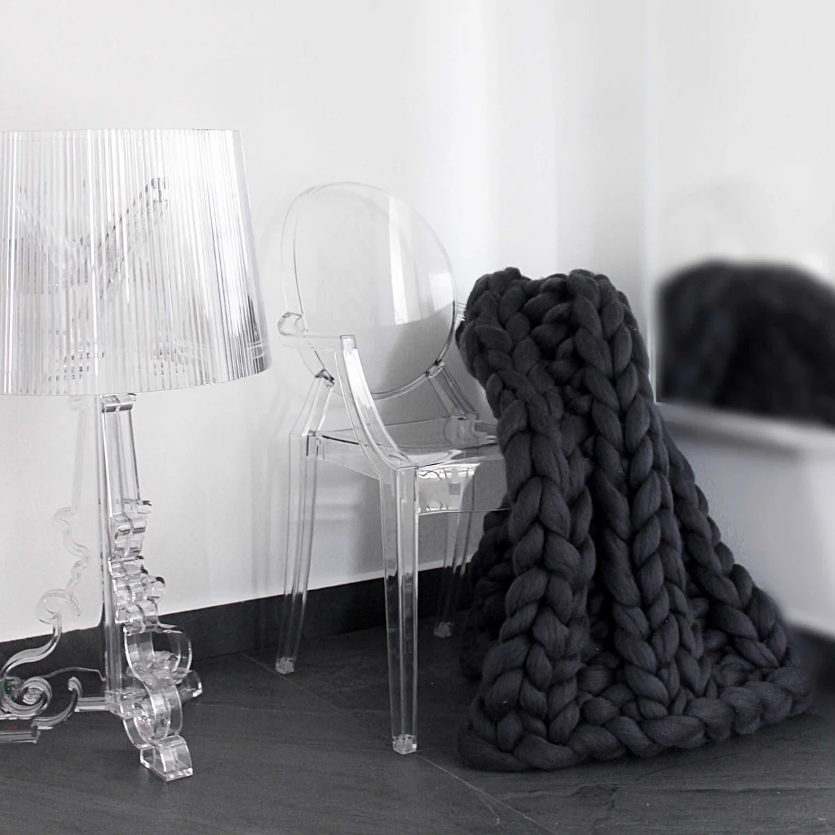 De Louis Ghost stoel van fabrikant Kartell staat bekend om zijn transparantie. Maar Louis belooft ook prachtige uitzichten als hij volledig in het zwart is gekleurd.