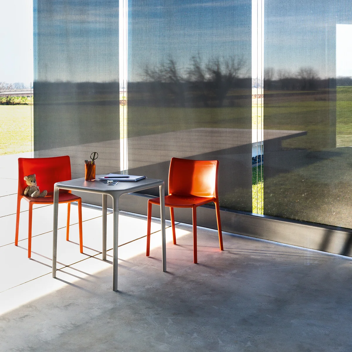 Dankzij het robuuste kunststofmateriaal kan de Air Ch air zowel binnen als buiten worden gebruikt.